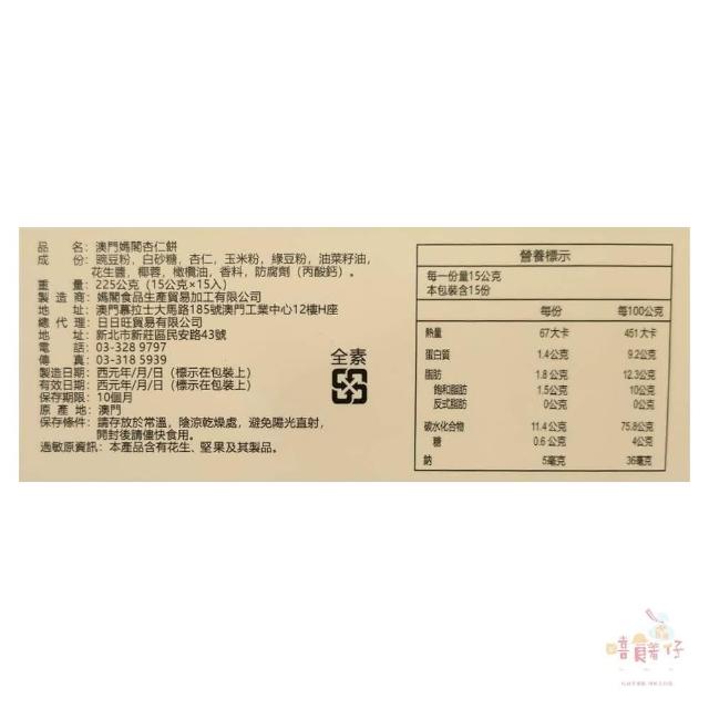 澳門 媽閣杏仁餅 255g 盒裝 全素 伴手禮 年節送禮【嘻饈仔現貨】