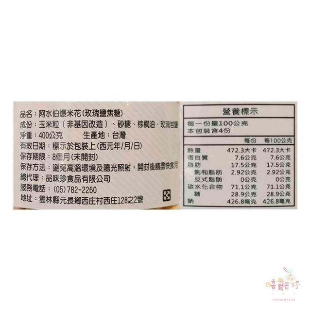 阿水伯 焦糖爆米花 / 巧克力爆米花 / 玫瑰鹽焦糖爆米花 400g 桶裝 (嘻饈仔)