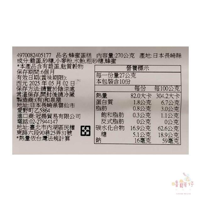 和泉屋長崎 蜂蜜蛋糕 270g 盒裝 切片蛋糕