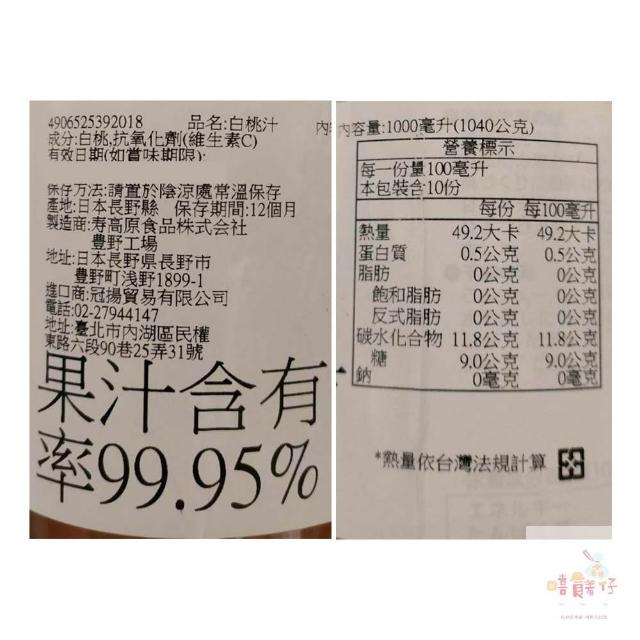 壽高原 千曲之滴水蜜桃汁 1000ml 玻璃瓶 日本進口【嘻饈仔現貨】