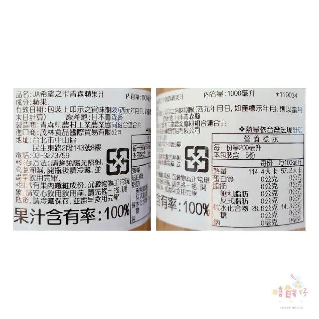青森農協蘋果汁 1000ml 玻璃瓶裝