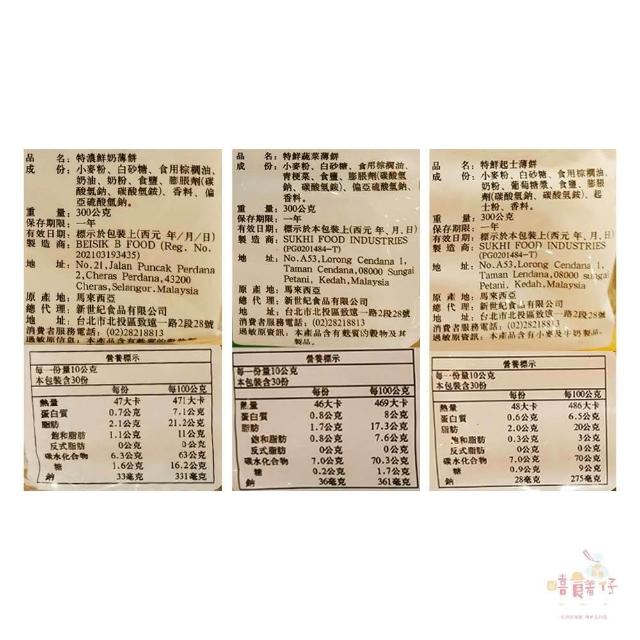 特鮮 蔬菜薄餅(全素) / 起士薄餅(奶素) / 牛奶薄餅(奶素) 300g 獨立包裝