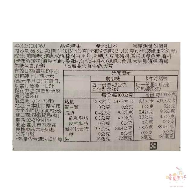 Kanro 甘樂珈琲茶館 72g 咖啡味 卡布奇諾味 雙味咖啡糖 夾鏈袋裝 獨立包裝 日本零食【嘻饈仔現貨】