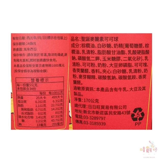 聖誕節糖果 麥麗素可可球 170g 桶裝 奶素 獨立包裝