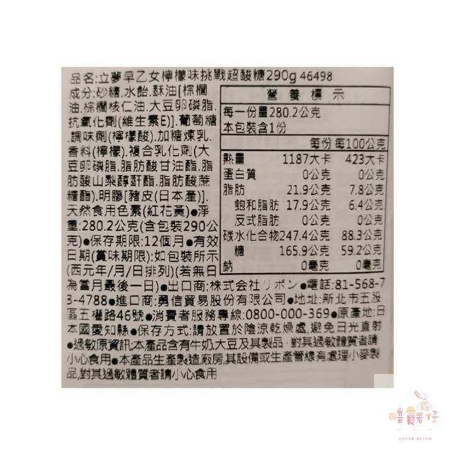 Ribon 立夢早乙女 挑戰超酸檸檬糖 290g 大包裝 夾心軟糖 (嘻饈仔)