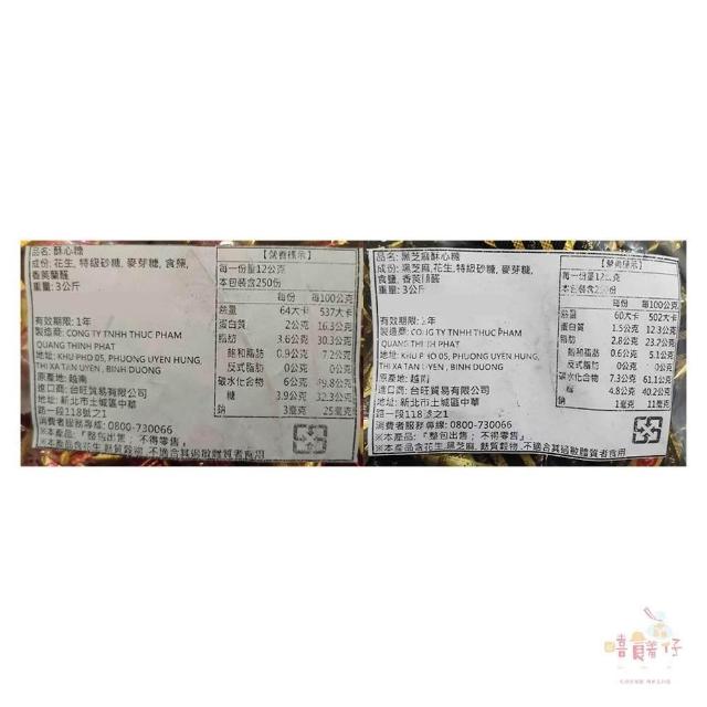 越南製 花生酥心糖 / 黑芝麻酥心糖 260g 娃娃酥 獨立包裝 (嘻饈仔)