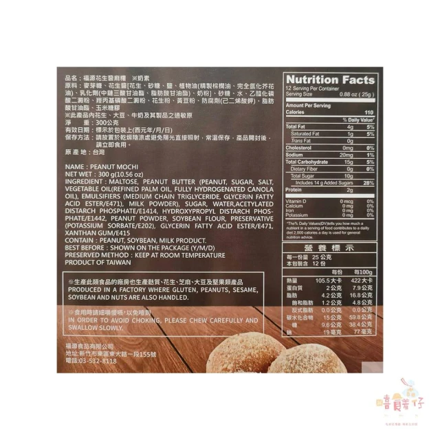 新竹福源花生醬麻糬 300g 盒裝 奶素 伴手禮