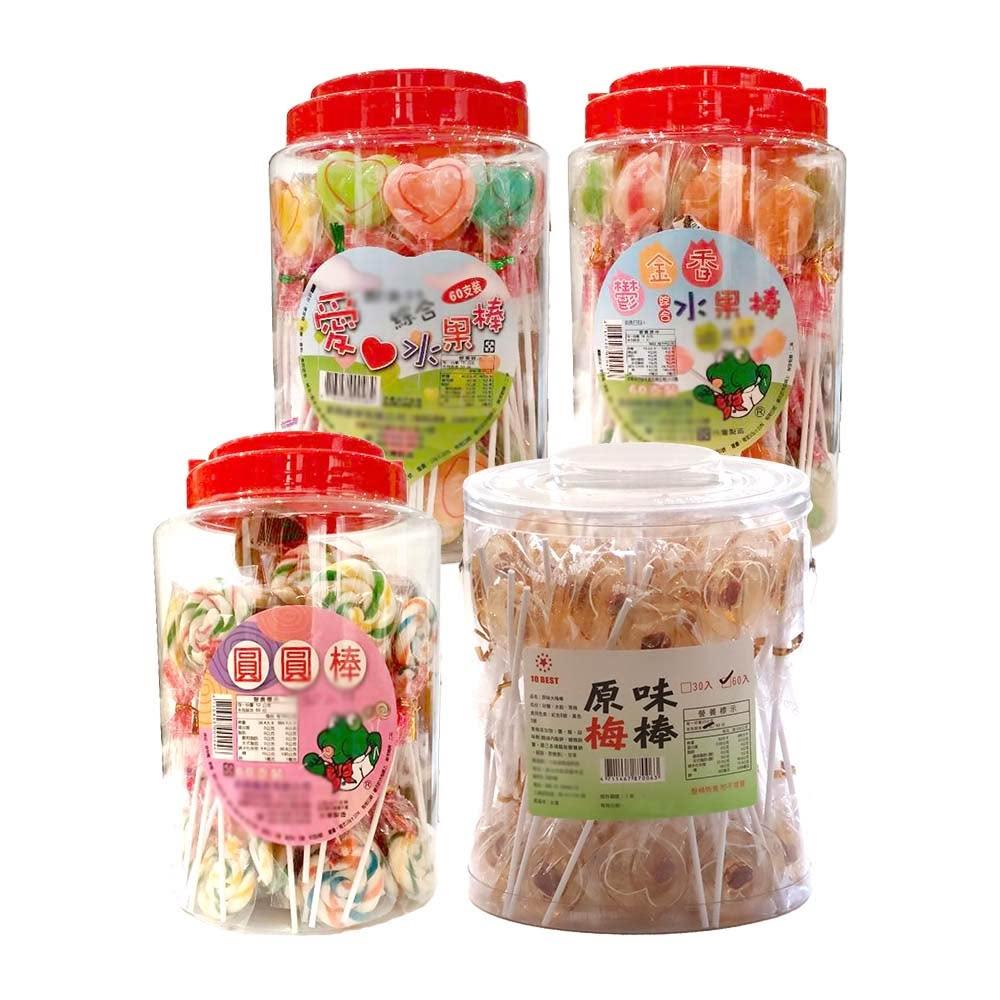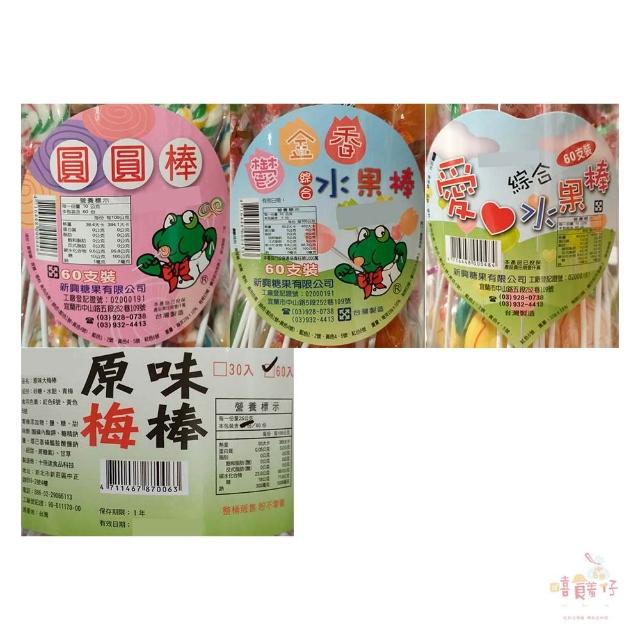 新興糖果 鬱金香綜合水果棒 / 愛心綜合水果棒 / 圓圓棒 / 原味大梅棒 60支 桶裝