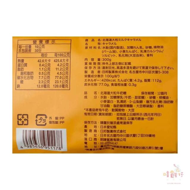 日邦製菓 北海道大粒牛奶糖 300g 袋裝 獨立包裝