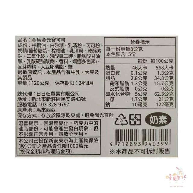 RIH RIH WANG 日日旺金馬金元寶可可 120g 盒裝 奶素 一盒裡面有15隻小金馬