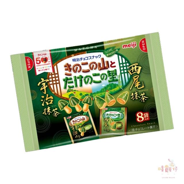 Meiji 明治蘑菇竹筍造型抹茶巧克力餅 8入 袋裝 獨立包裝