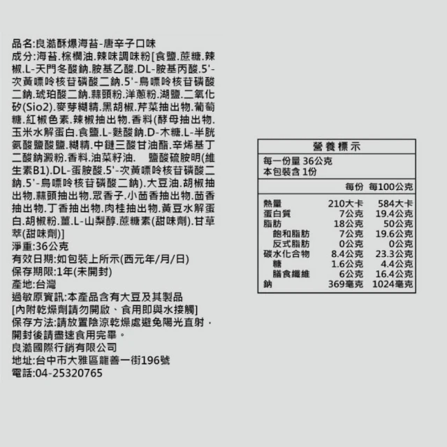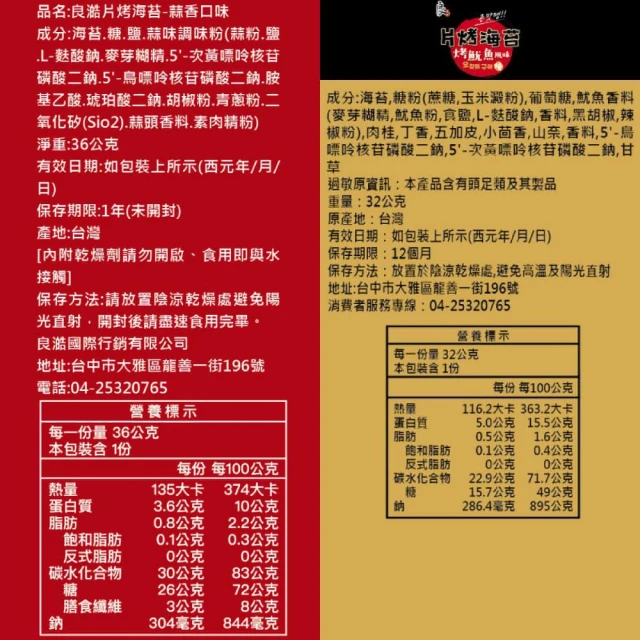 良澔片烤海苔蒜香/烤魷魚/酥爆海苔唐辛子(箱購20入)