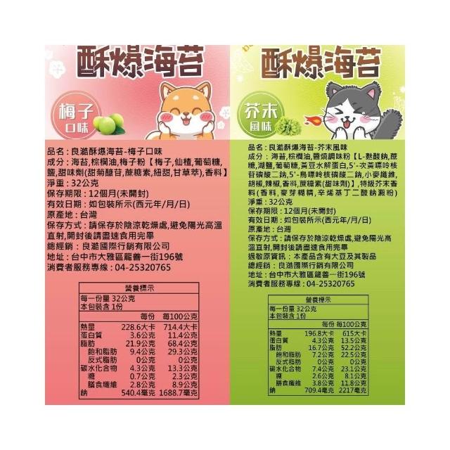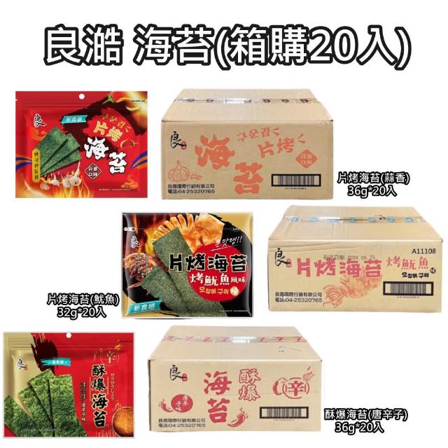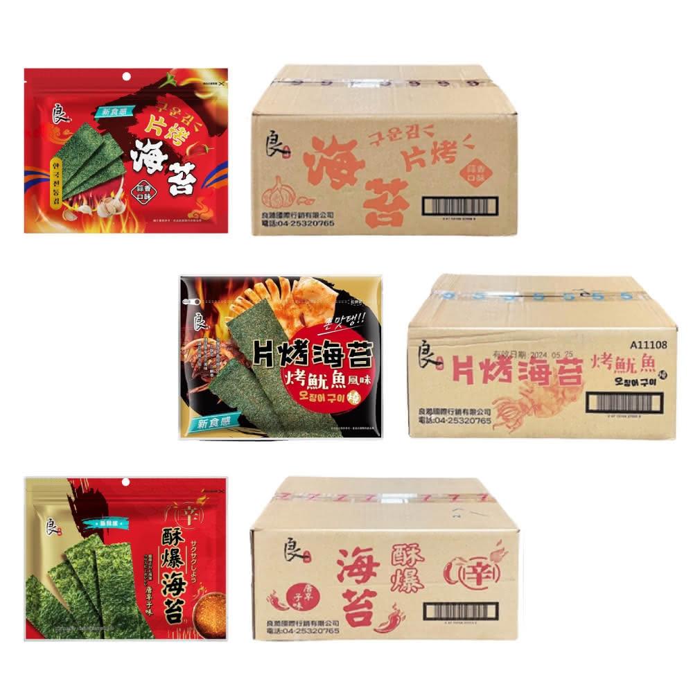 良澔片烤海苔蒜香/烤魷魚/酥爆海苔唐辛子(箱購20入)