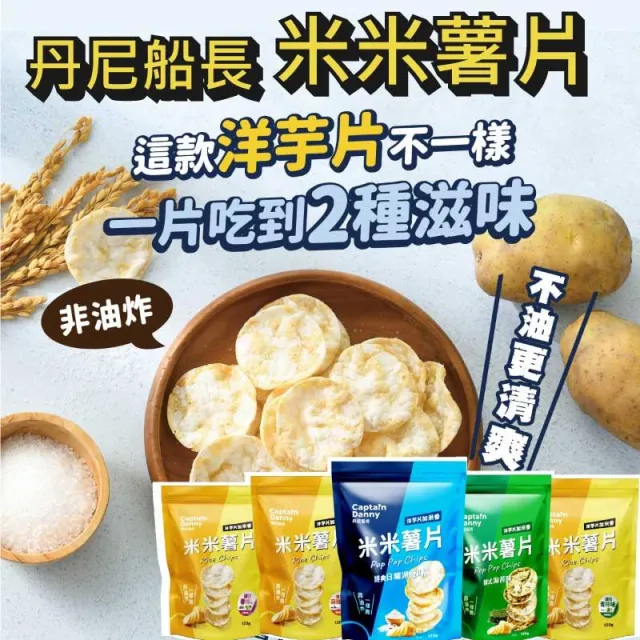Captain Danny 丹尼船長丹尼船長米米薯片 米的洋芋片 經典日曬湖鹽味 韓式海苔味 湖塩青檸味 爆香蒜辣味 非油炸