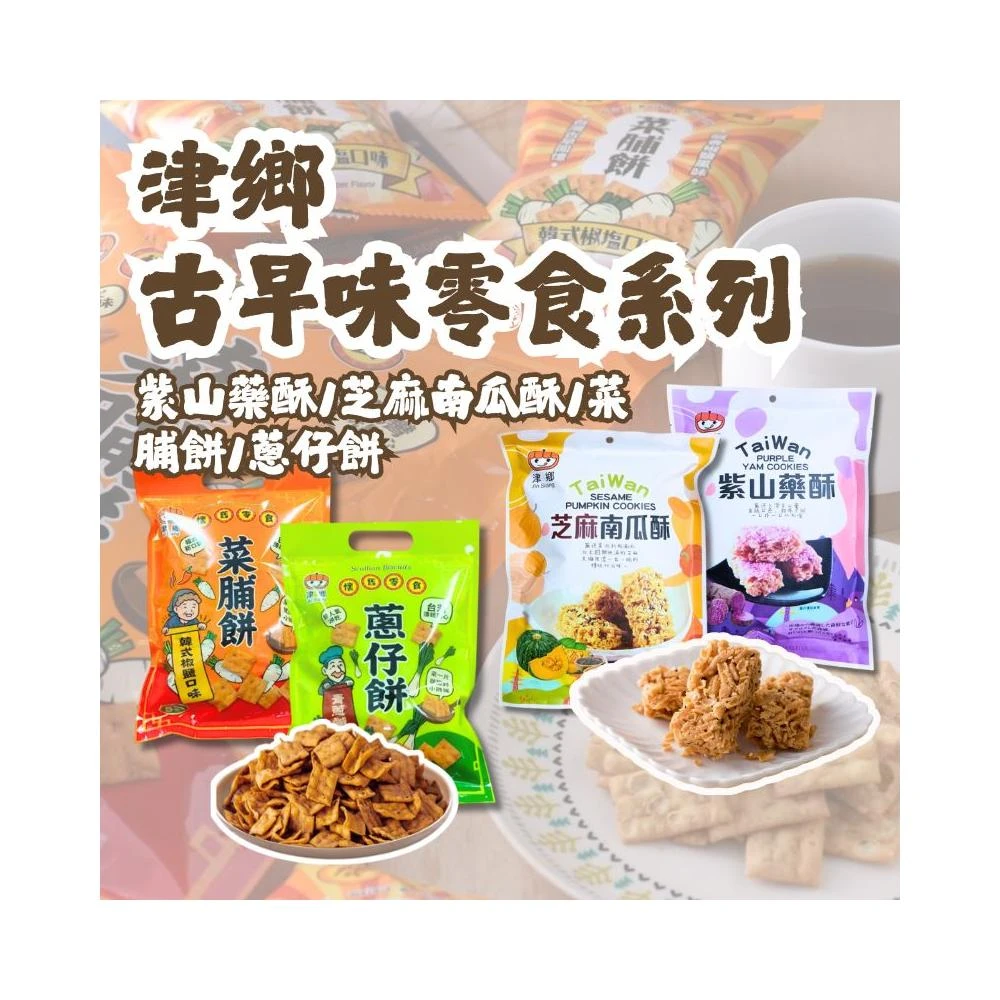 津鄉古早味懷舊零食 紫山藥酥 芝麻南瓜酥 菜脯餅 蔥仔餅