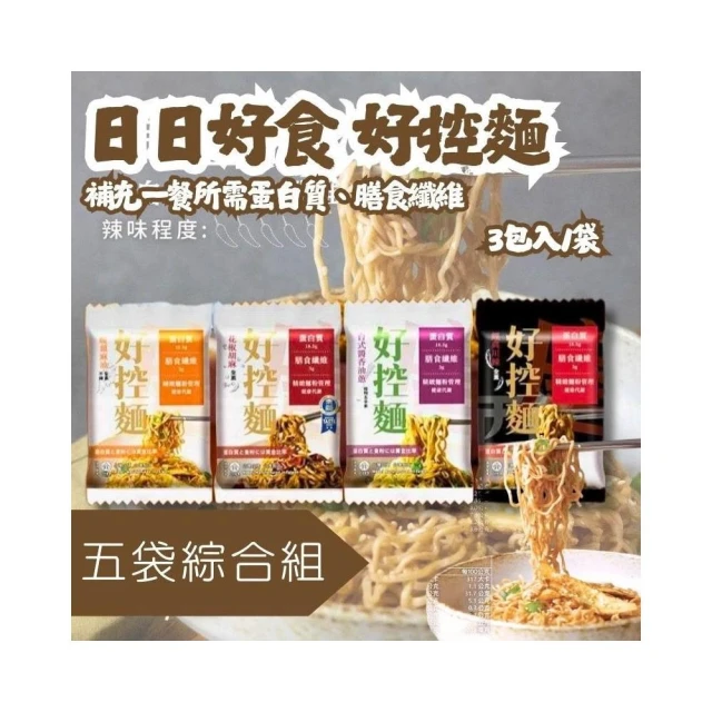 Goodfoodeveryday 日日好食好控拌麵 3包入/袋 五袋組合包(醬香油蔥/暖薑麻油/花椒胡麻/經典川辣)