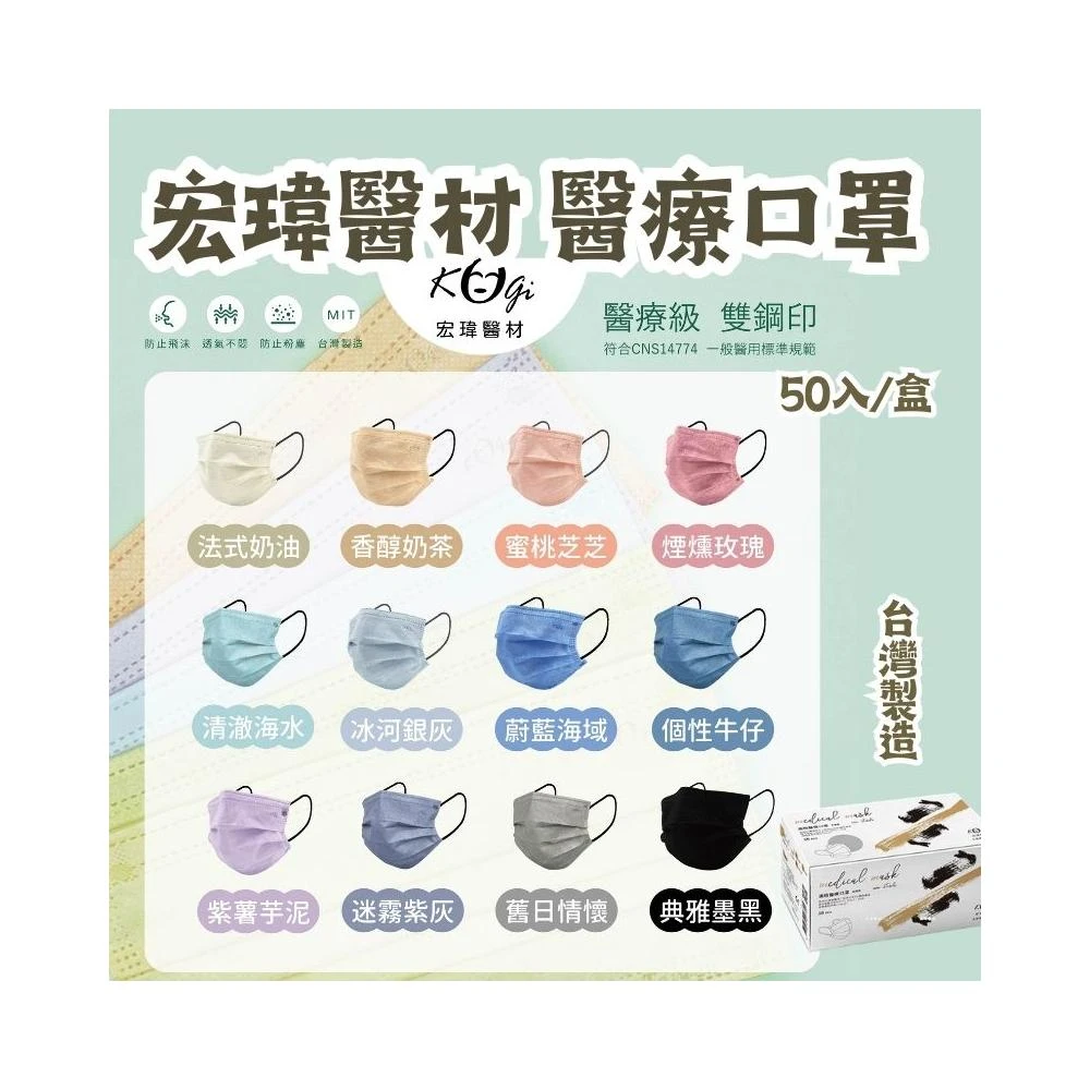 宏瑋醫療口罩 50入/盒 成人口罩 兒童口罩 平面口罩 台灣製