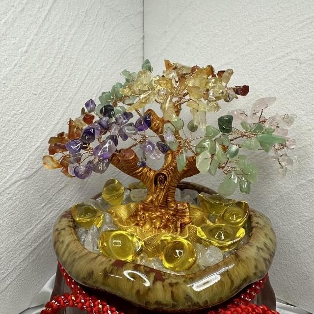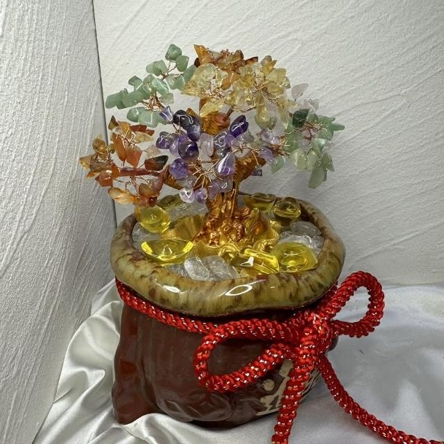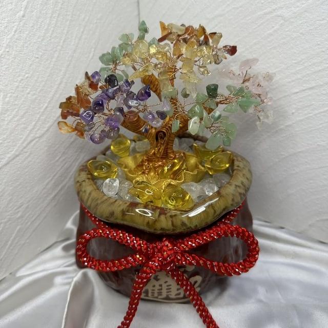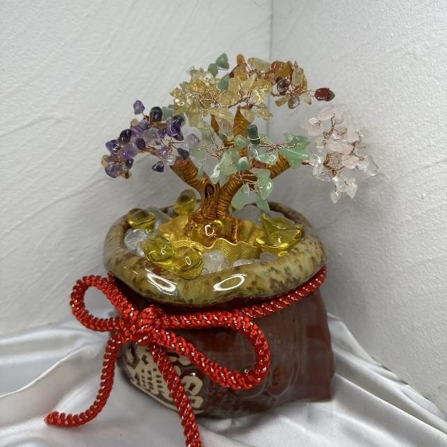 千奇國際精品五行招財樹錢袋聚寶盆(天然五行水晶 正財 偏財 貴人 健康攏總來)