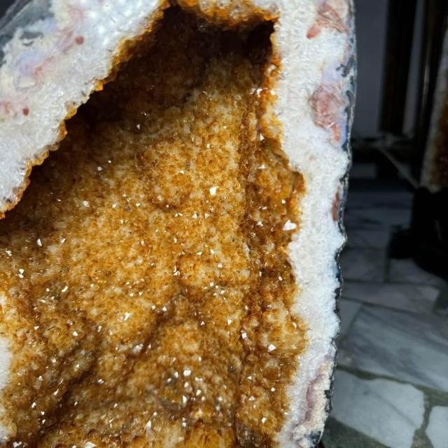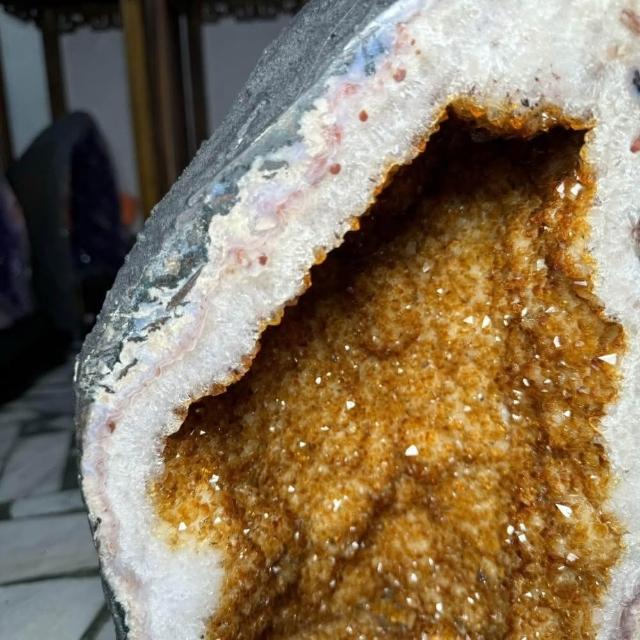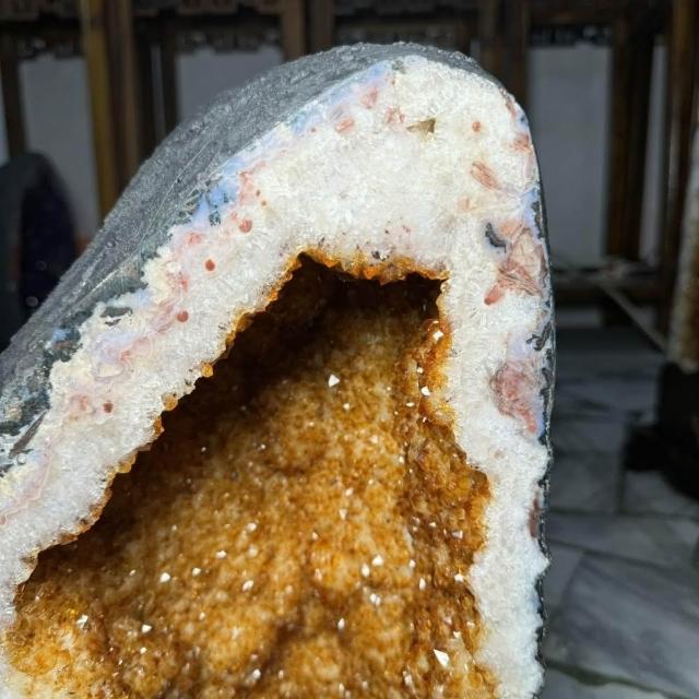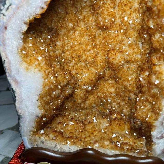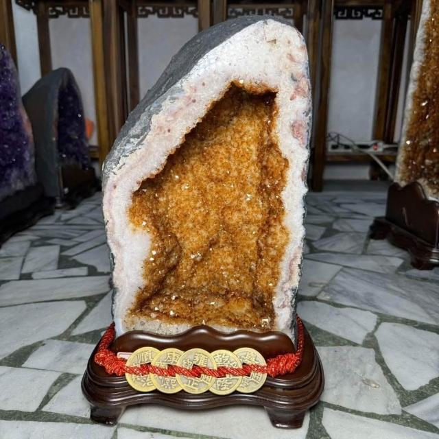 千奇國際精品頂級巴西酒黃 黃水晶洞ESP+✨16.42kg❤️招財黃晶洞 多彩瑪瑙邊 口寬有洞深 送禮收藏 黃水晶洞