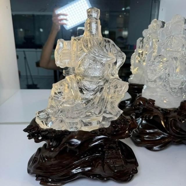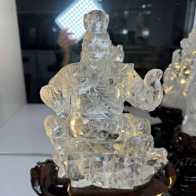 千奇國際精品頂級收藏 天然激光料白水晶 文關公 關聖帝君雕件🌟 天然白水晶 文關公 關公擺件 關聖帝君 天然水晶