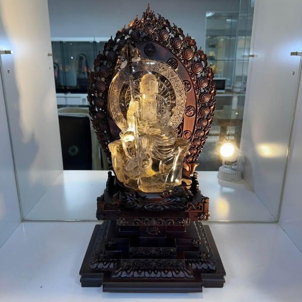 千奇國際精品頂級收藏 天然黃 地藏王菩薩 水晶雕件♥️天然黃帶彩虹光 地藏王菩薩 栩栩如生晶雕 送禮收藏 地藏王 黃水晶地藏王