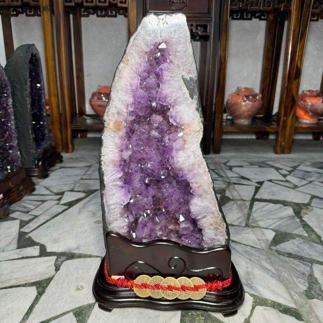 千奇國際精品台南水晶批發 天然水晶 巴西紫水晶洞 Q0✨24.6kg♥️鈦晶 黑碧璽 晶牙水亮 送禮收藏 水晶洞 紫晶洞