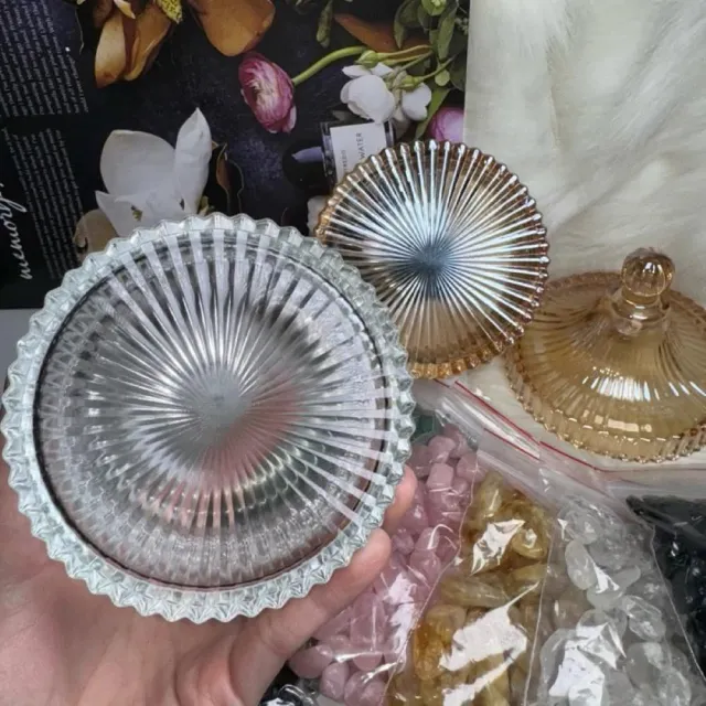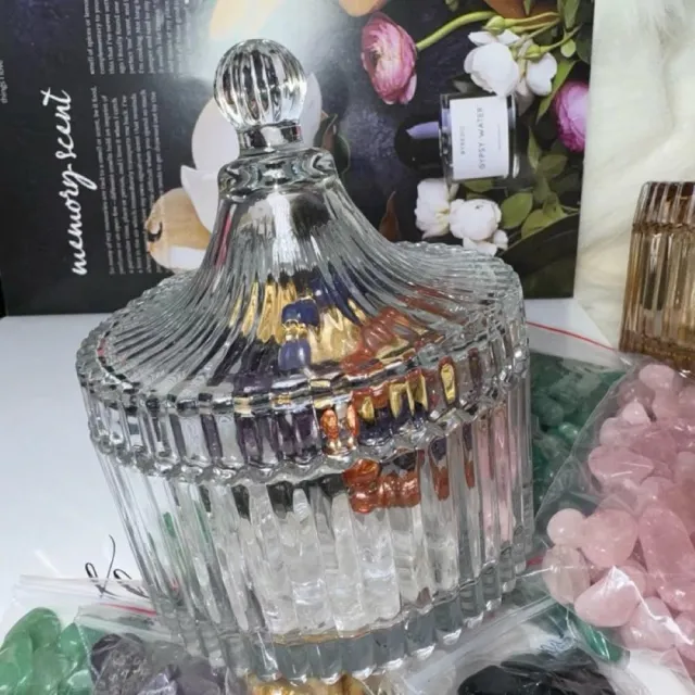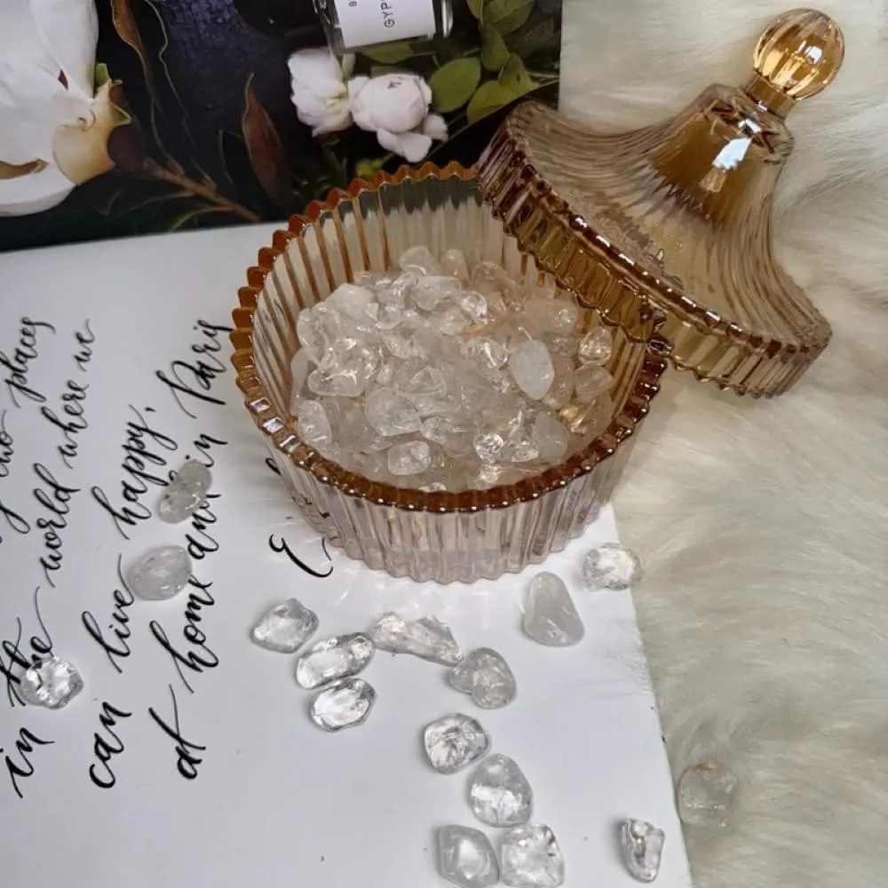 千奇國際精品(香檳色水晶碗)😻宮廷風菱紋 贈天然白水晶石200公克❤️