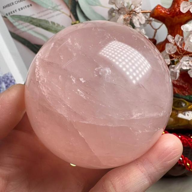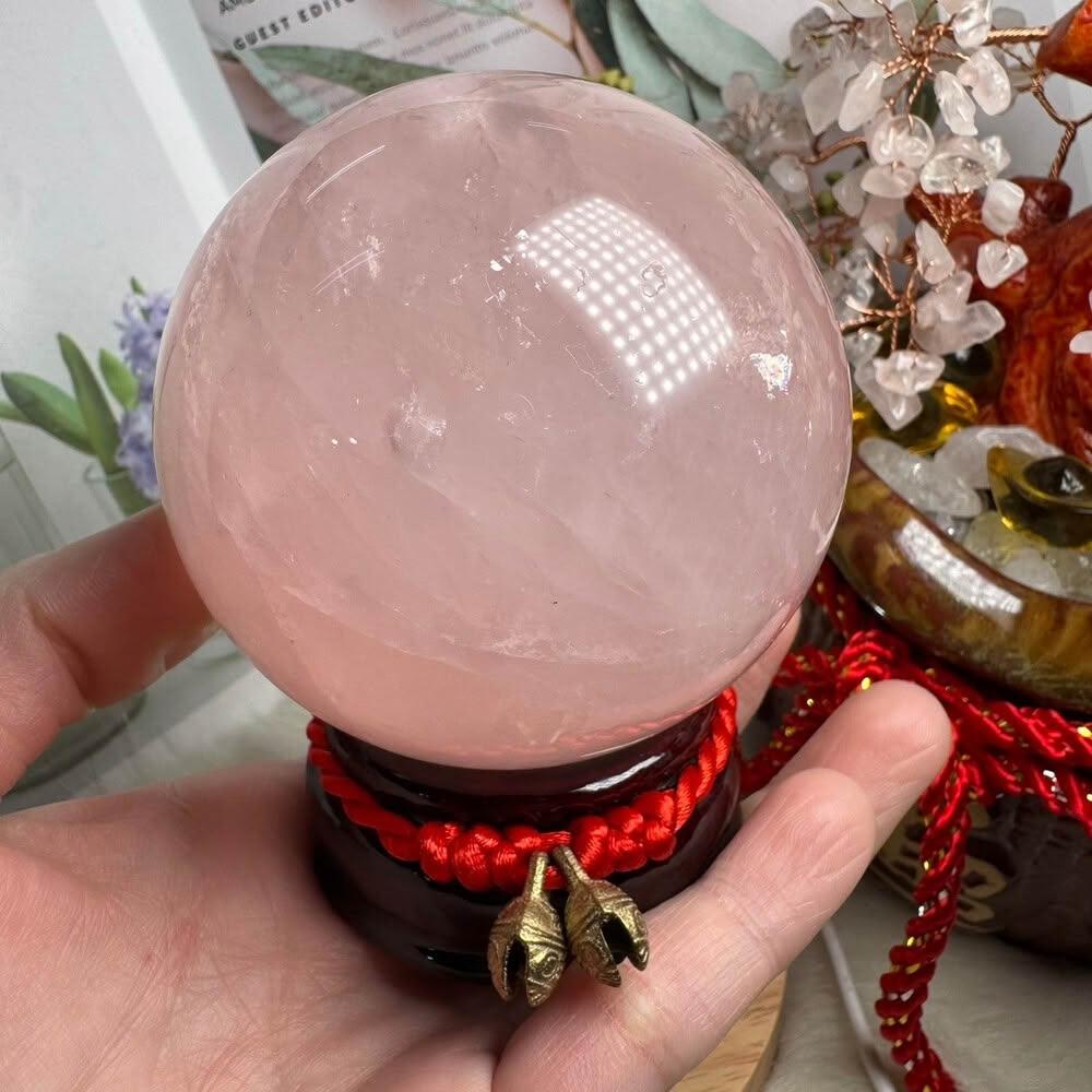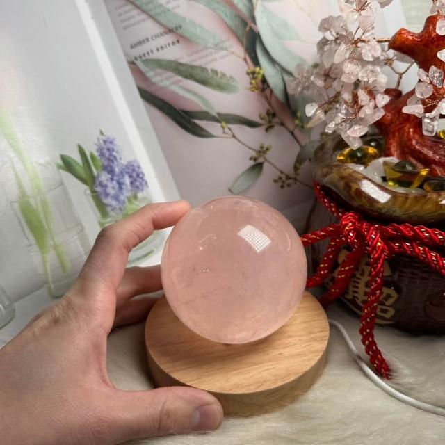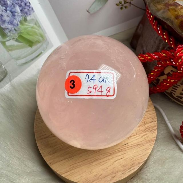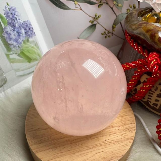 千奇國際精品頂級天然星光 粉水晶球 3號594公克🩷芙蓉色 粉水晶 贈底座✔️天然水晶 招好人緣 好桃花 人氣品 送禮收藏 粉水晶