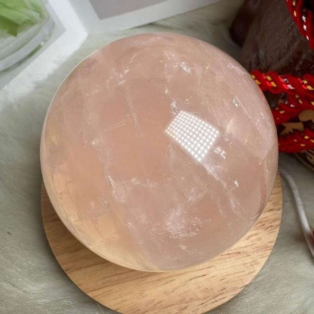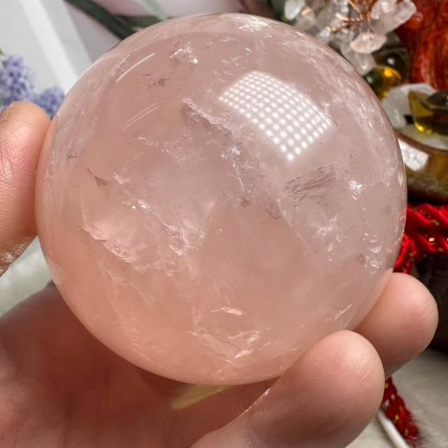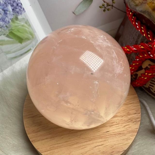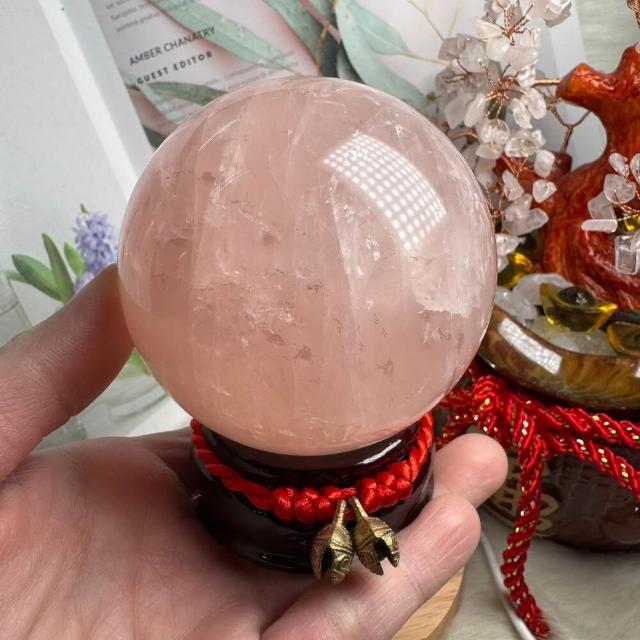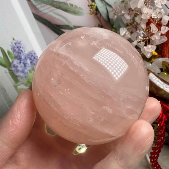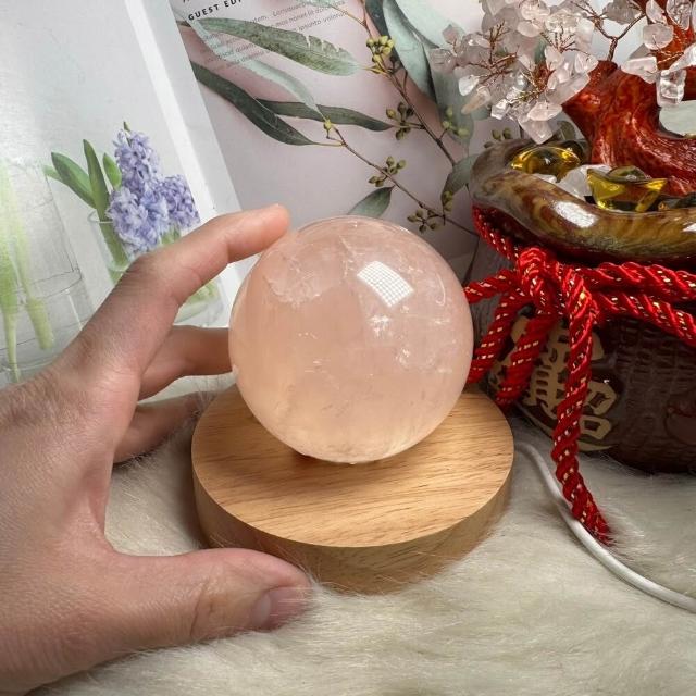 千奇國際精品頂級天然星光 粉水晶球 6號532公克🩷芙蓉色 粉水晶 贈底座✔️天然水晶 招好人緣 好桃花 人氣品 送禮收藏 粉水晶