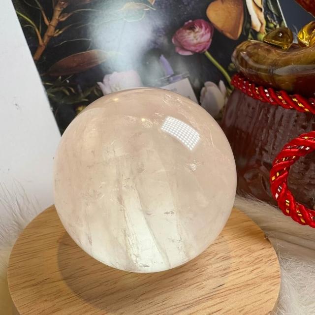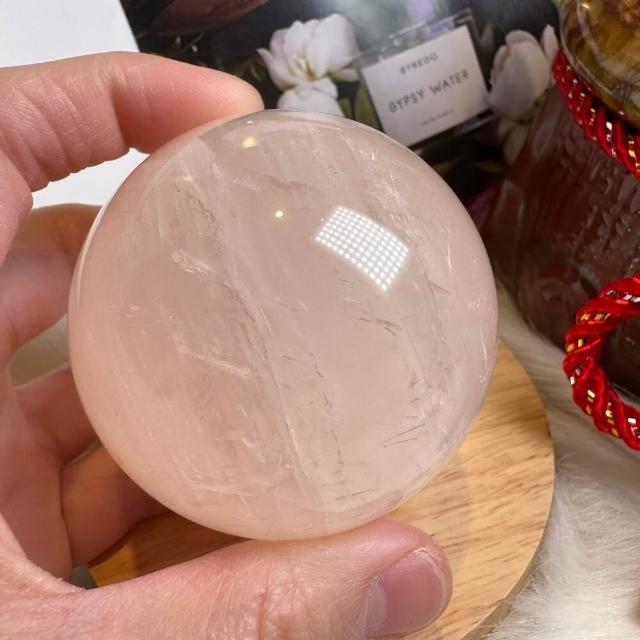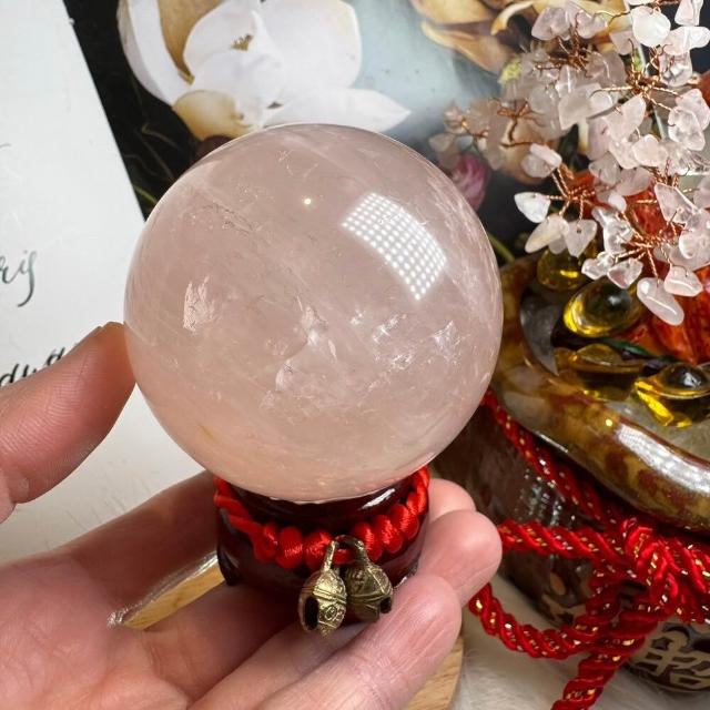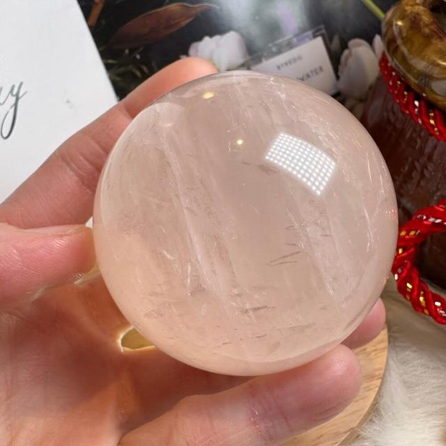 千奇國際精品頂級天然星光 粉水晶球 8號363公克🩷芙蓉色 粉水晶 贈底座✔️天然水晶 招好人緣 好桃花 人氣品 送禮收藏 粉水晶