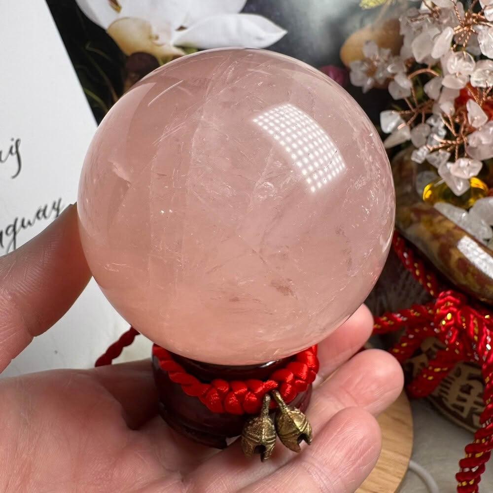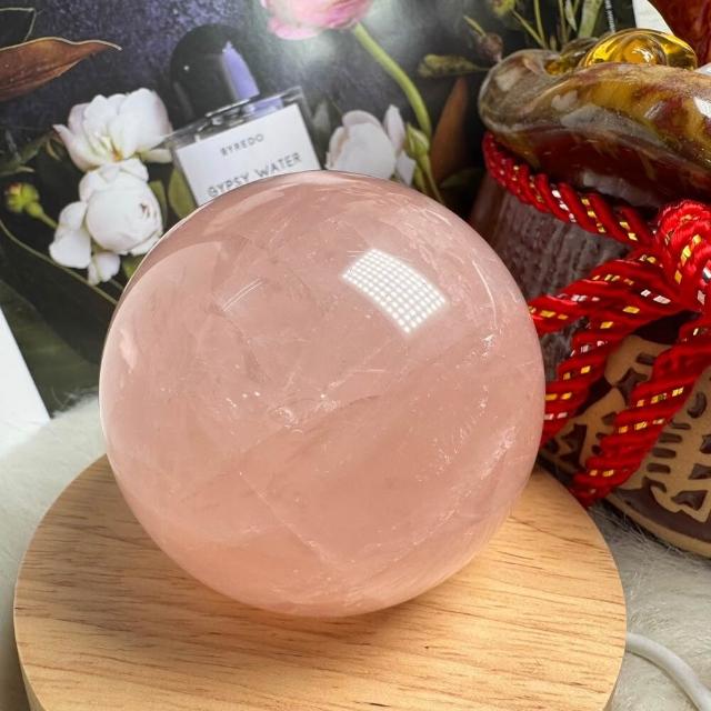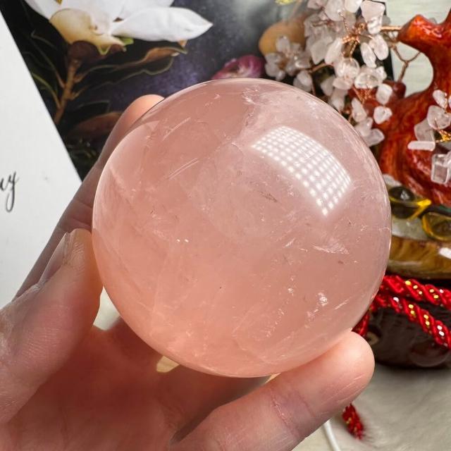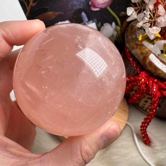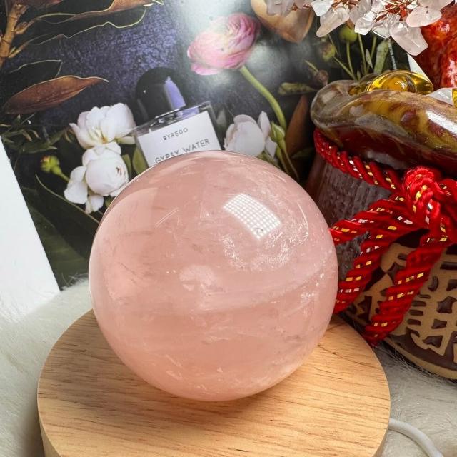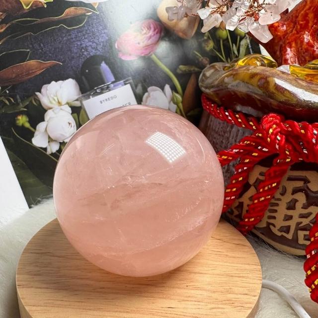 千奇國際精品頂級天然星光 粉水晶球 9號409公克🩷芙蓉色 粉水晶 贈底座✔️天然水晶 招好人緣 好桃花 人氣品 送禮收藏 粉水晶