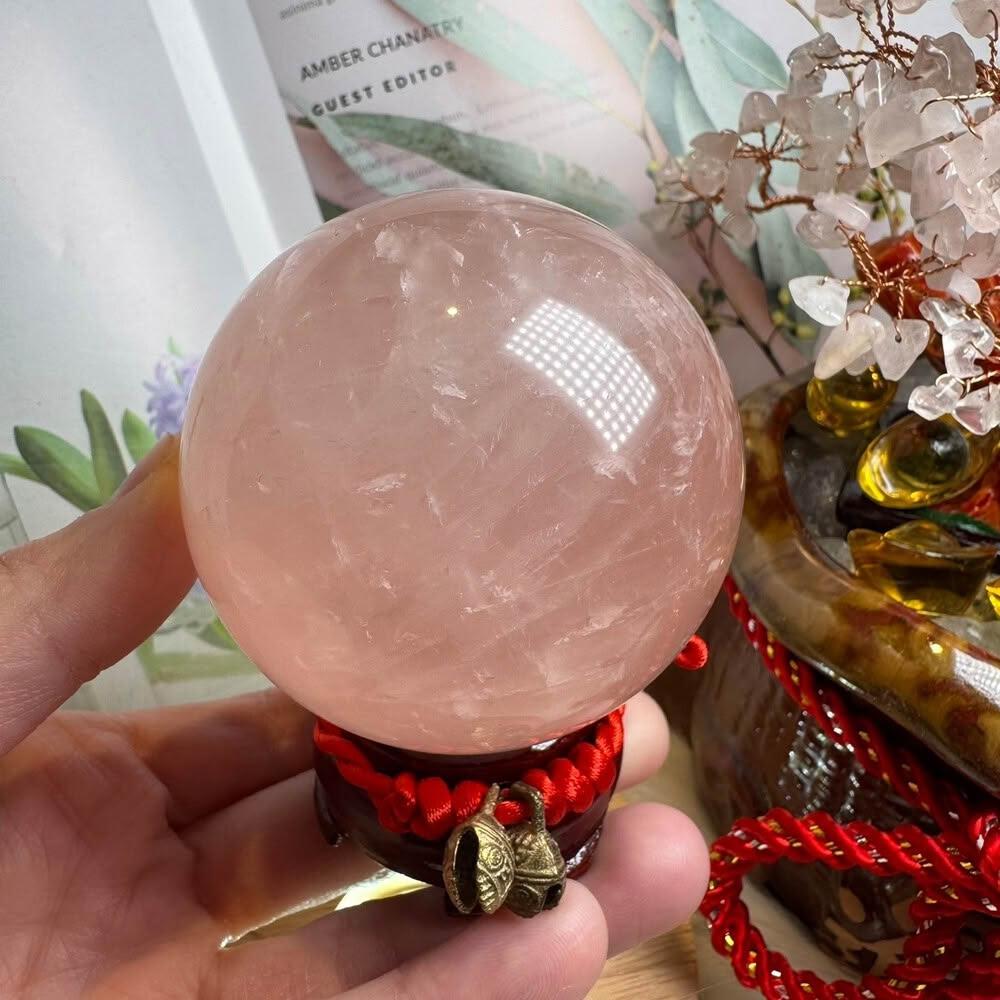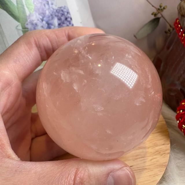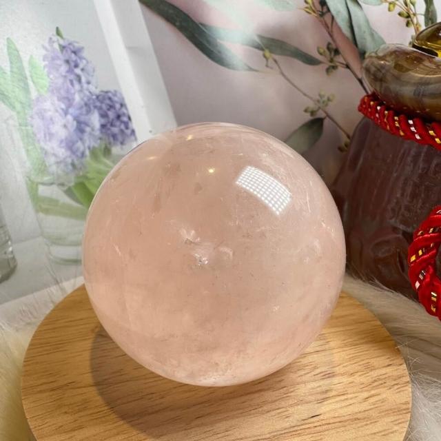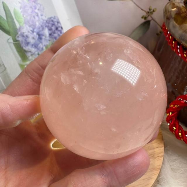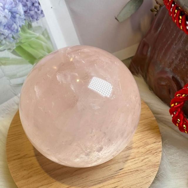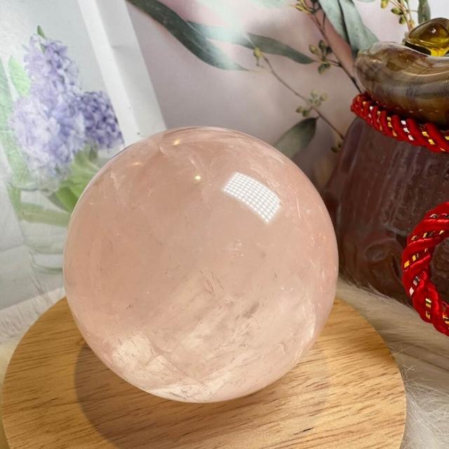 千奇國際精品頂級天然星光 粉水晶球 12號351公克🩷芙蓉色 粉水晶 贈底座✔️天然水晶 招好人緣 好桃花 人氣品 送禮收藏 粉水晶