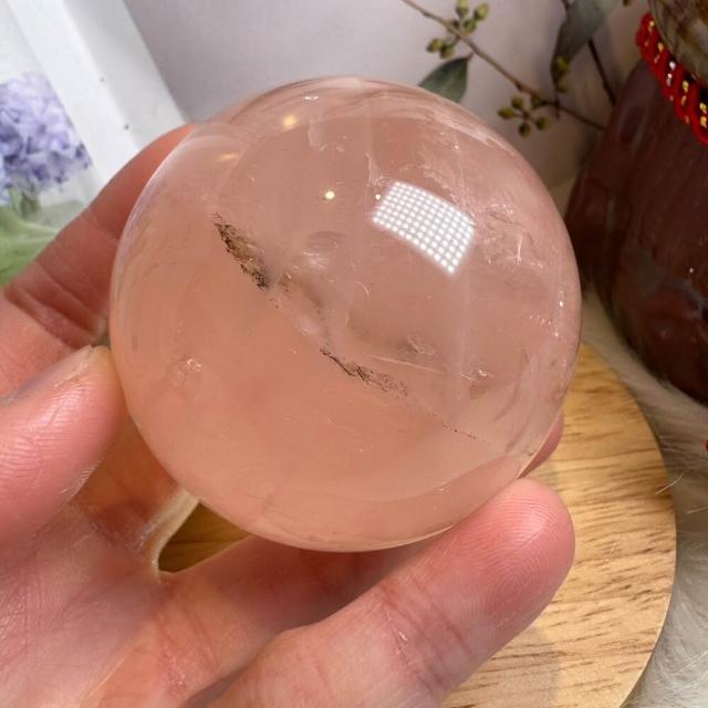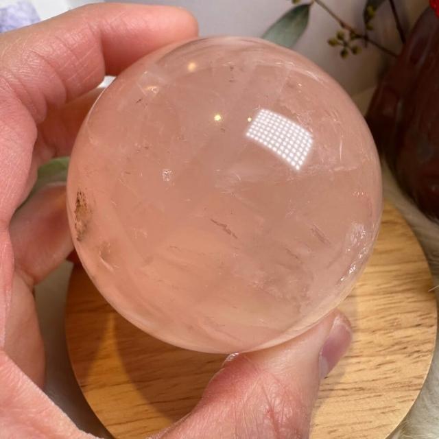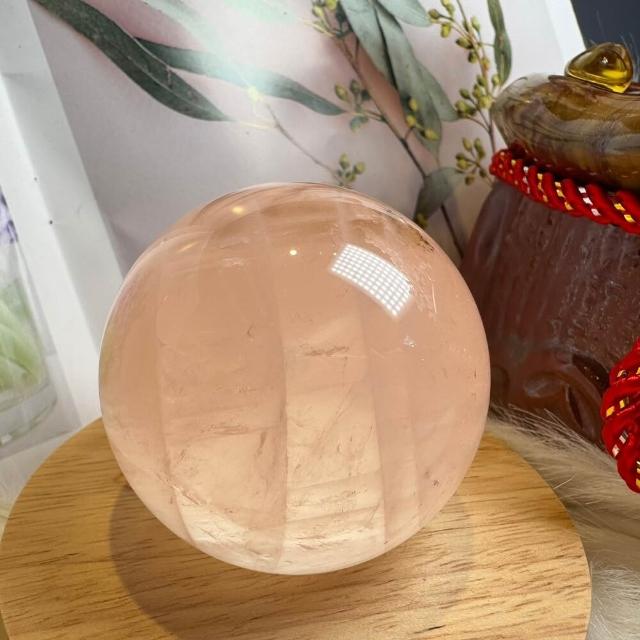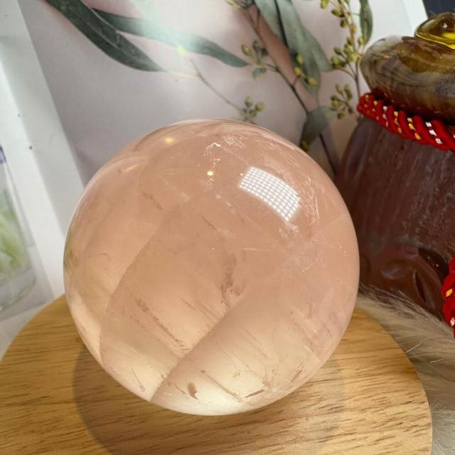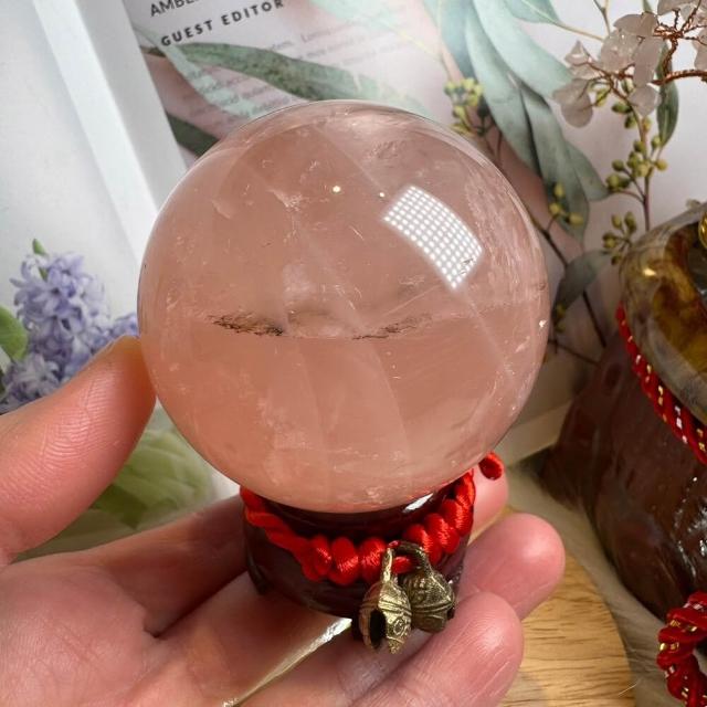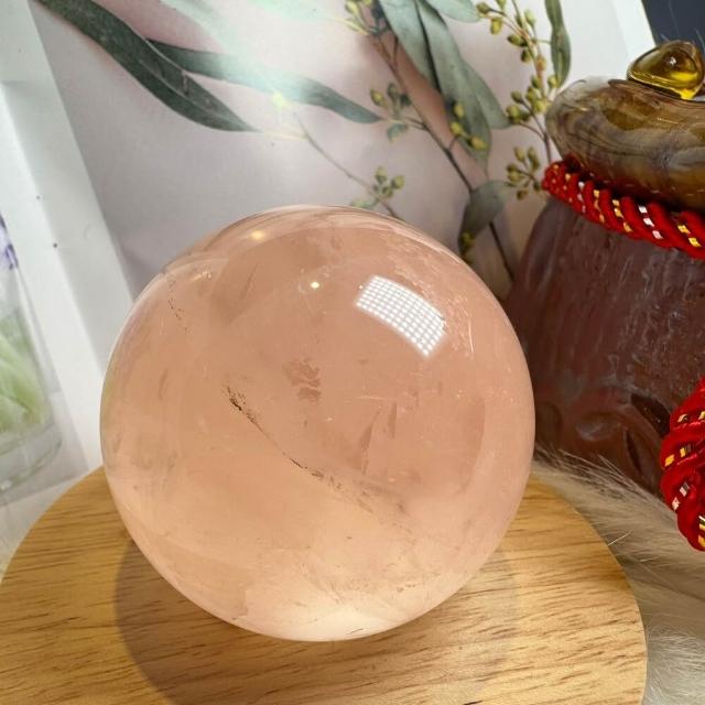 千奇國際精品頂級天然星光 粉水晶球 22號335公克🩷芙蓉色 粉水晶 贈底座✔️天然水晶 招好人緣 好桃花 人氣品 送禮收藏 粉水晶