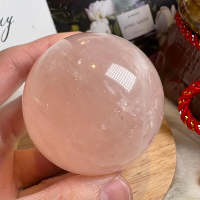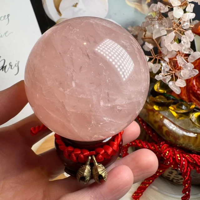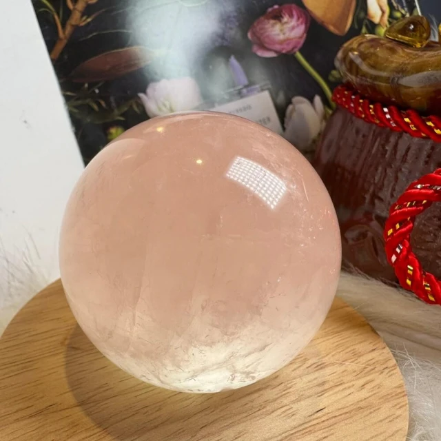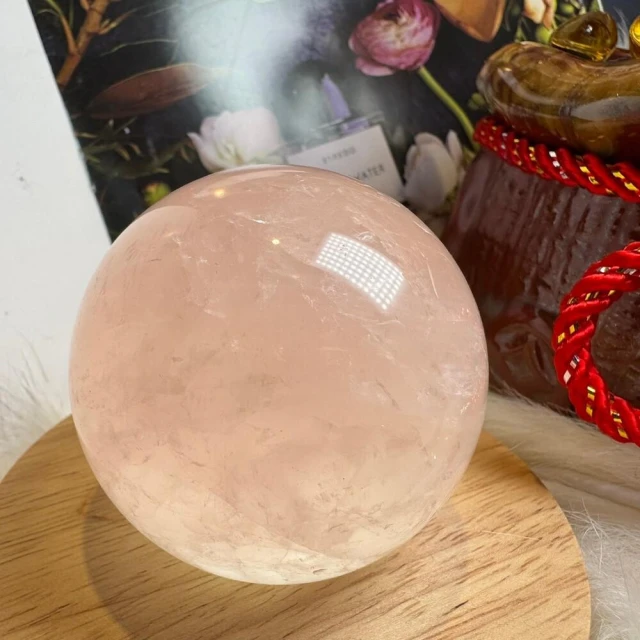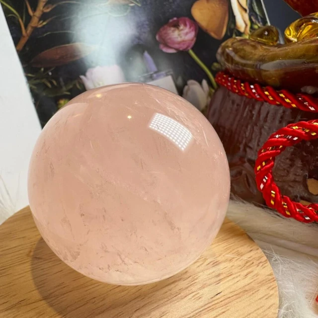 千奇國際精品頂級天然星光 粉水晶球 42號342公克🩷芙蓉色 粉水晶 贈底座✔️天然水晶 招好人緣 好桃花 人氣品 送禮收藏 粉水晶
