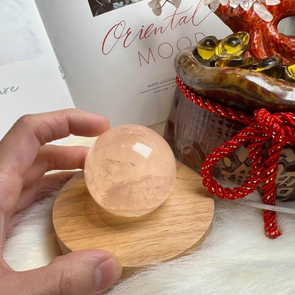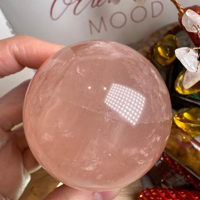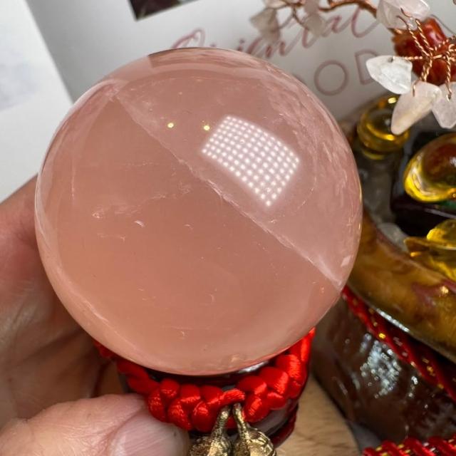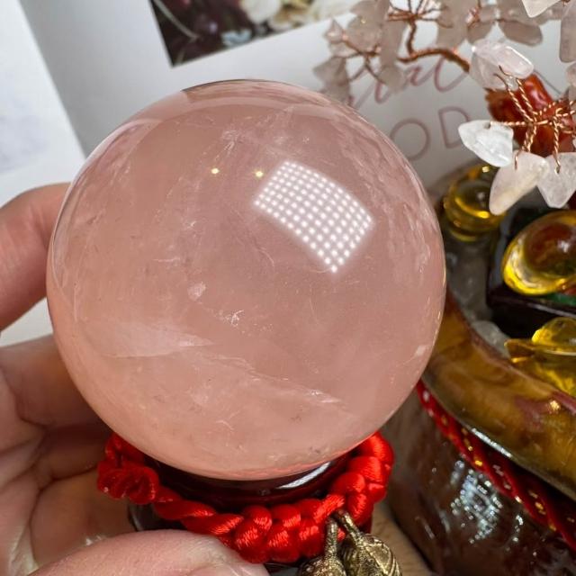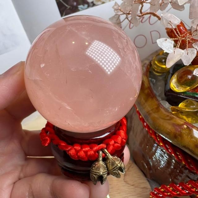 千奇國際精品超美粉透~天然星光 粉水晶球 45號221公克🩷芙蓉色 粉水晶 贈底座✔️天然水晶 招好人緣 好桃花
