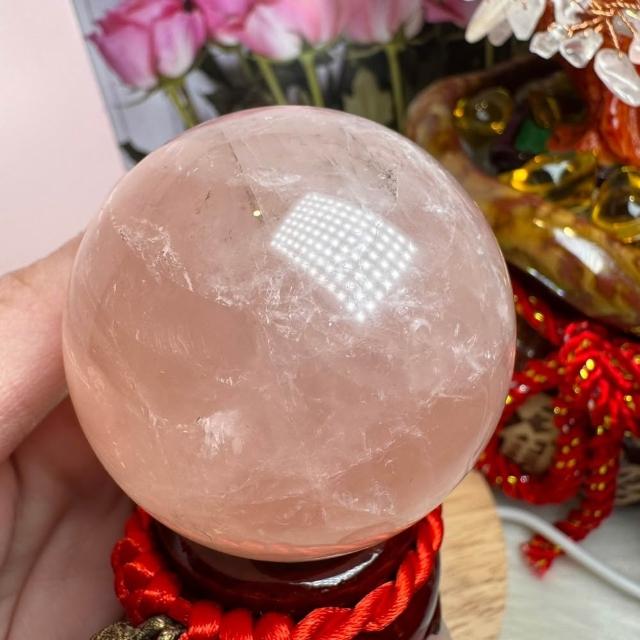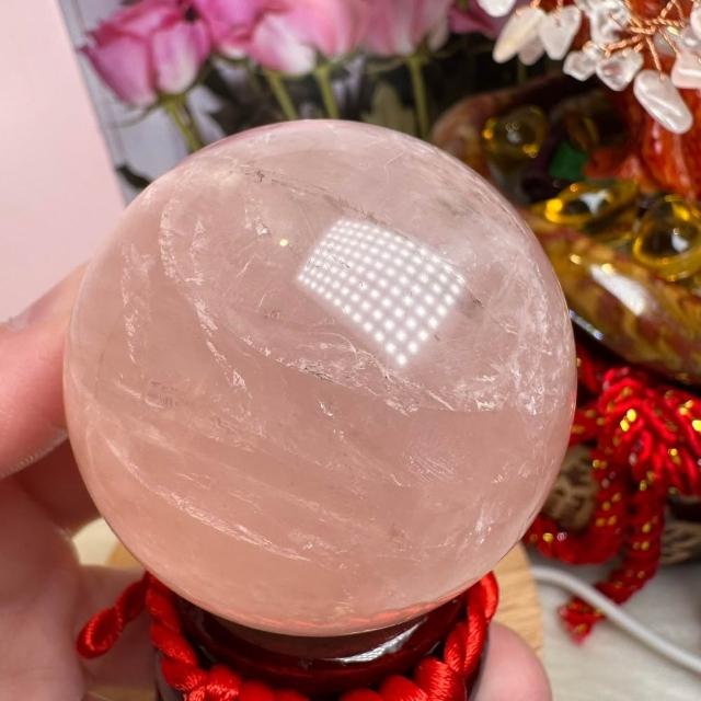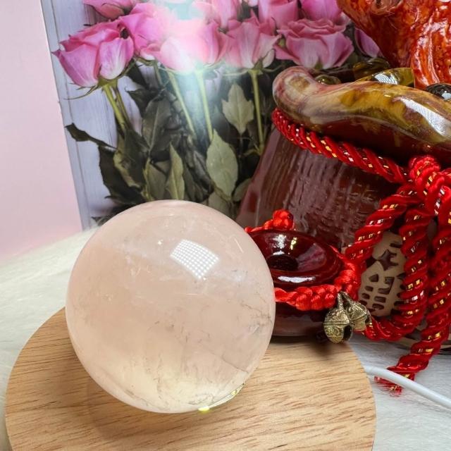 千奇國際精品頂級天然星光 粉水晶球 56號194公克🩷芙蓉色 粉水晶 贈底座✔️天然水晶 招好人緣 好桃花 人氣品
