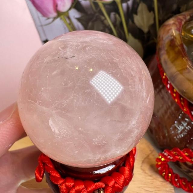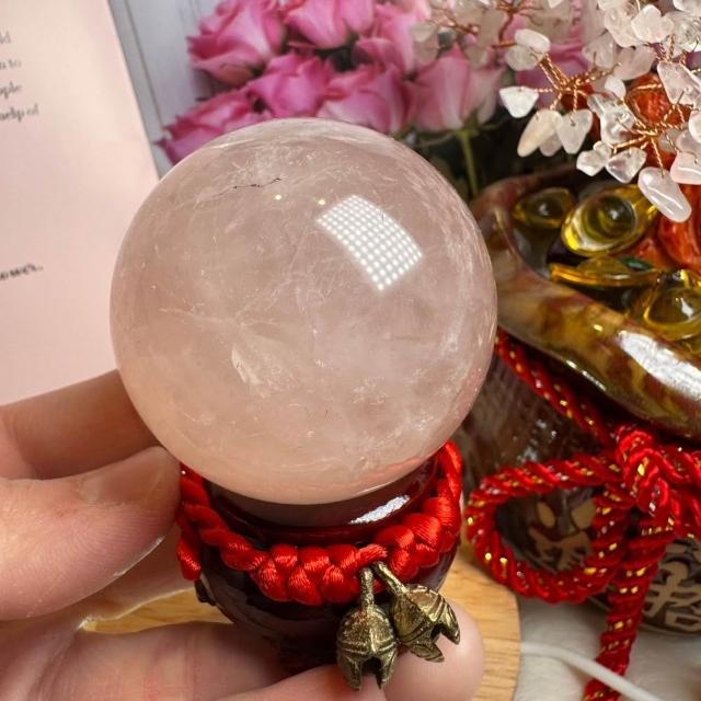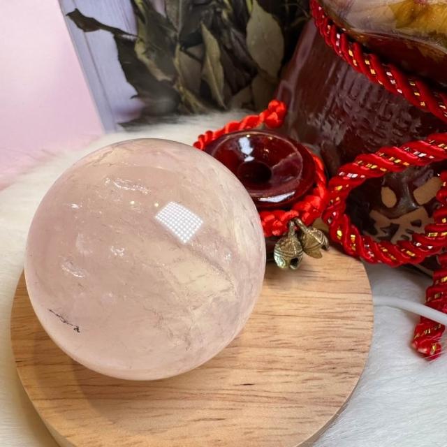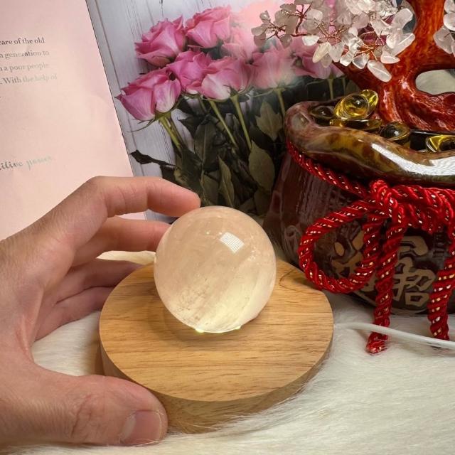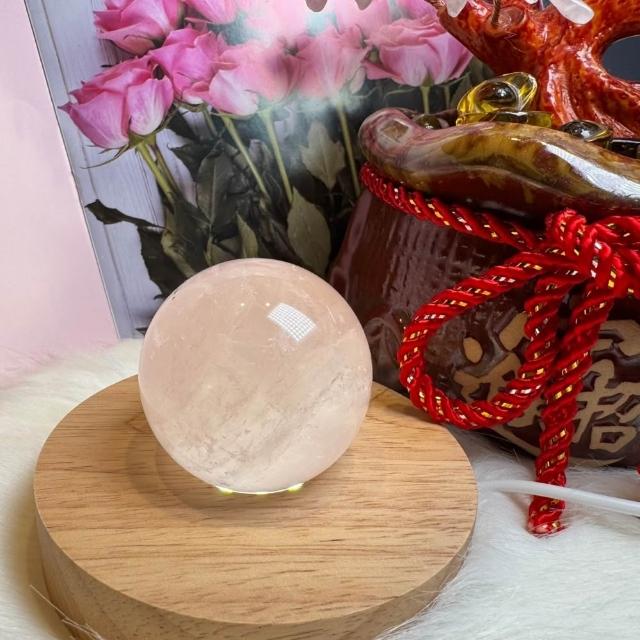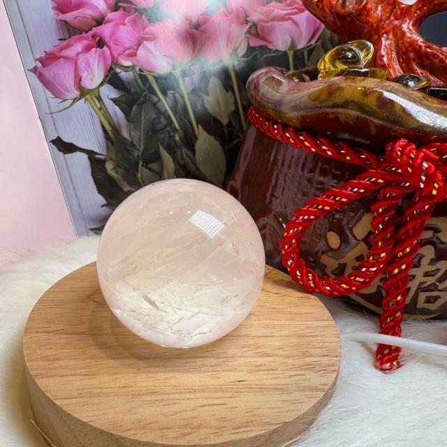千奇國際精品有共生礦 天然星光 粉水晶球 57號192公克🩷芙蓉色 粉水晶 贈底座✔️天然水晶 招貴人 桃花