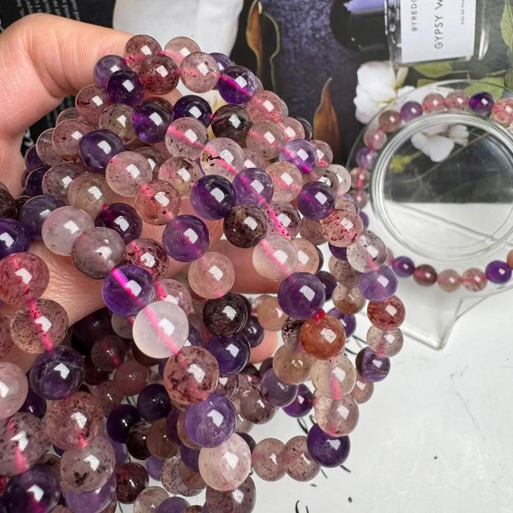 千奇國際精品甜甜價❤️天然超七水晶手珠 手串7~9mm 2款尺寸🫶超七水晶單圈 超七串珠 超七散珠 送禮禮品 收藏 DIY串珠超七