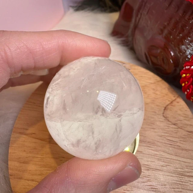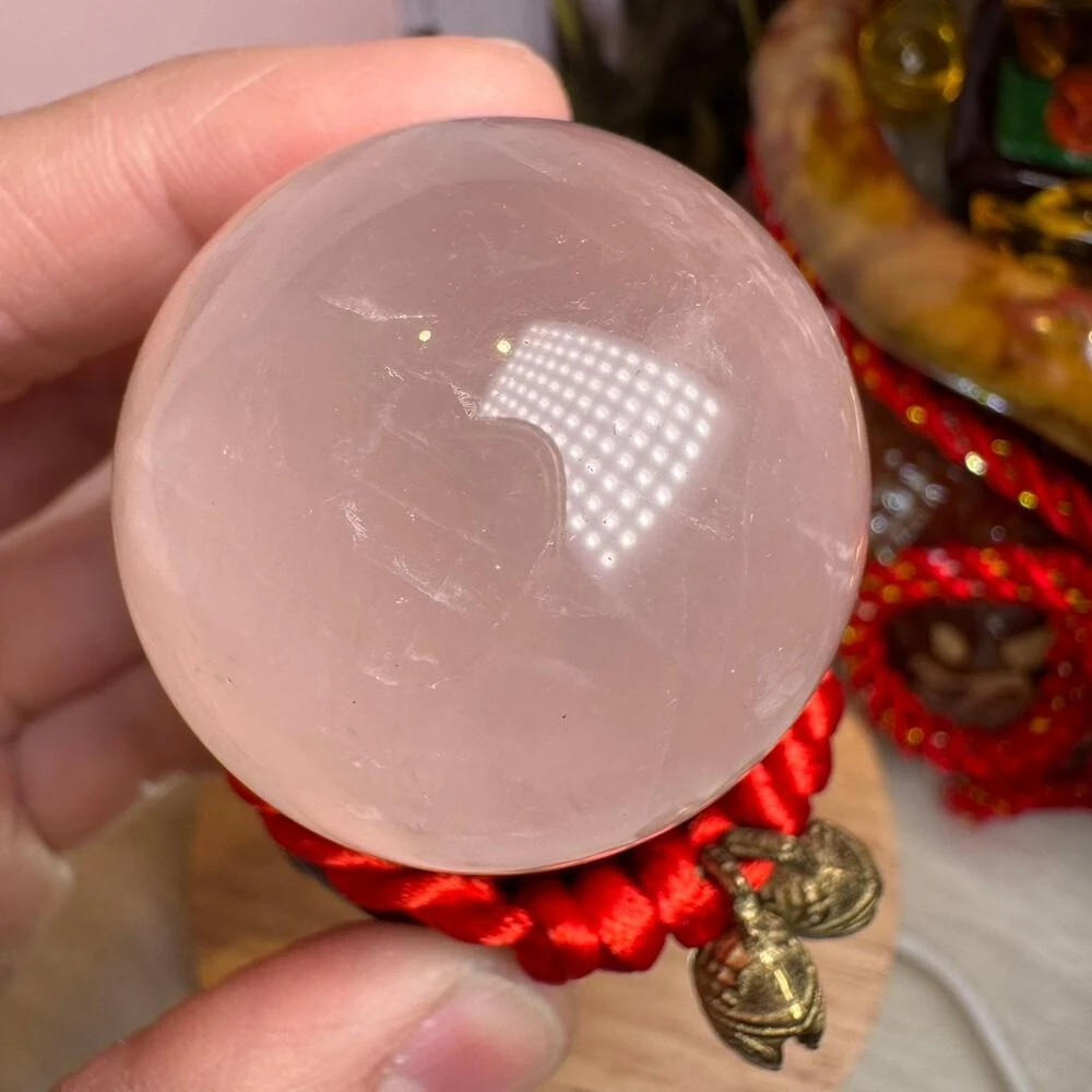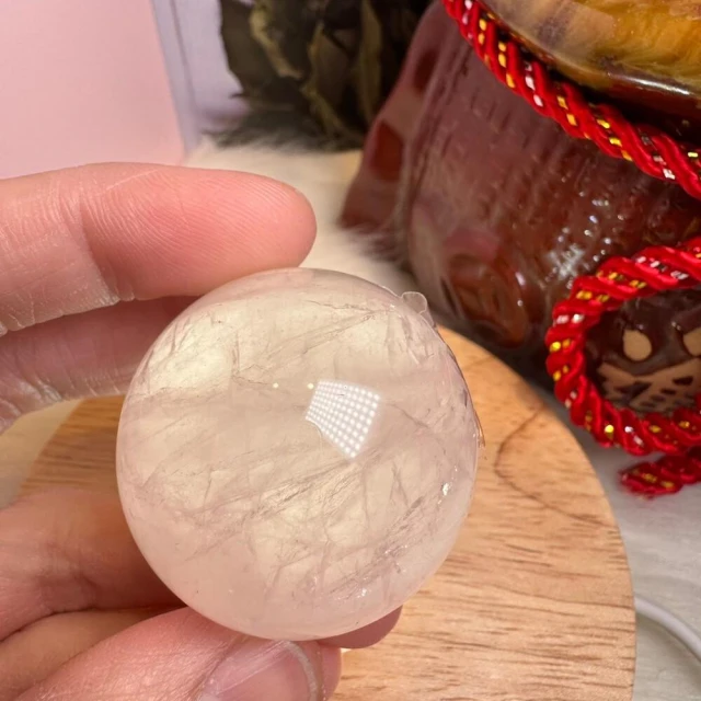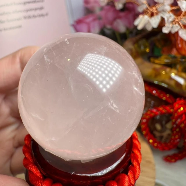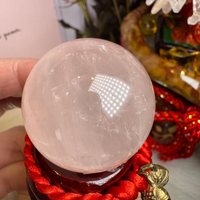 千奇國際精品MiniQ🥰天然星光粉水晶球 122號77公克🩷芙蓉色 粉水晶 贈底座✔️天然水晶 招好人緣 好桃花 送禮 收藏