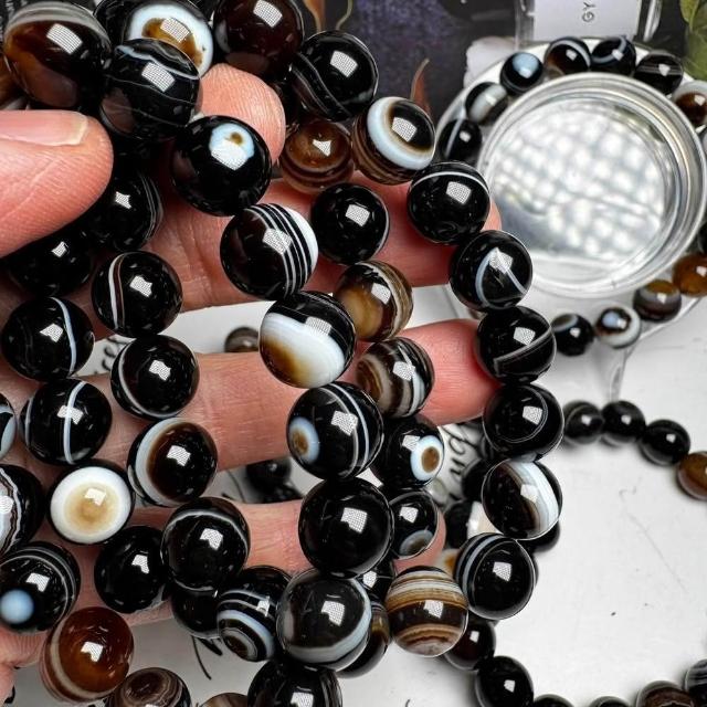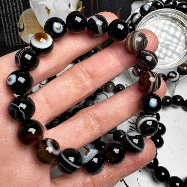千奇國際精品千層帶眼瑪瑙天珠 款式6 天珠 千層瑪瑙手珠 10mm手圍16公分 隨機出貨款 帶眼瑪瑙 送禮禮品收藏