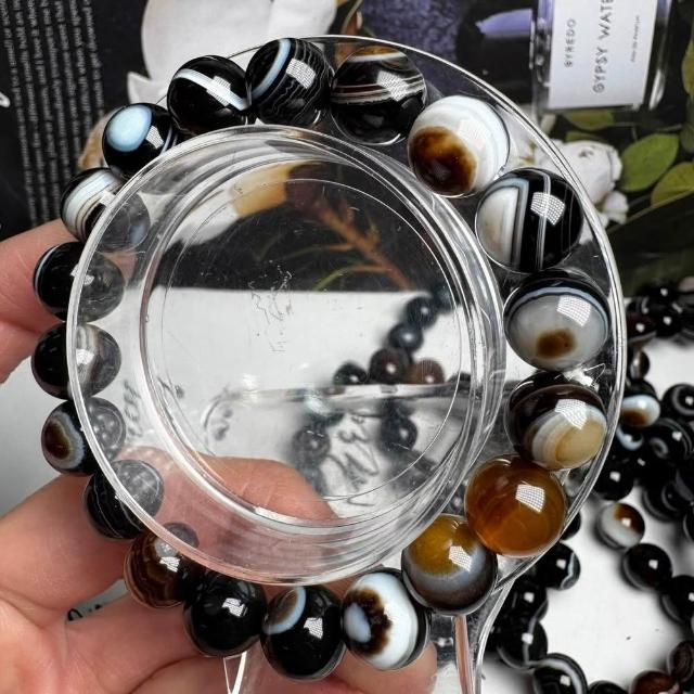 千奇國際精品千層帶眼瑪瑙天珠 款式6 天珠 千層瑪瑙手珠 10mm手圍16公分 隨機出貨款 帶眼瑪瑙 送禮禮品收藏