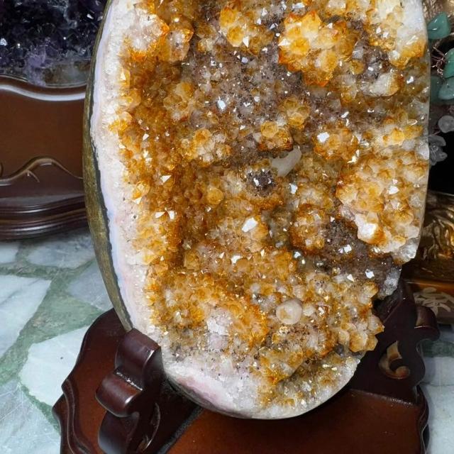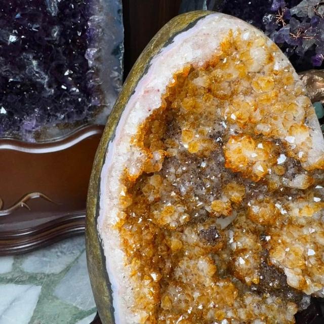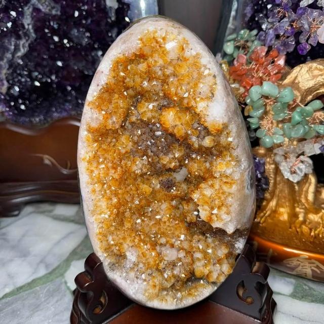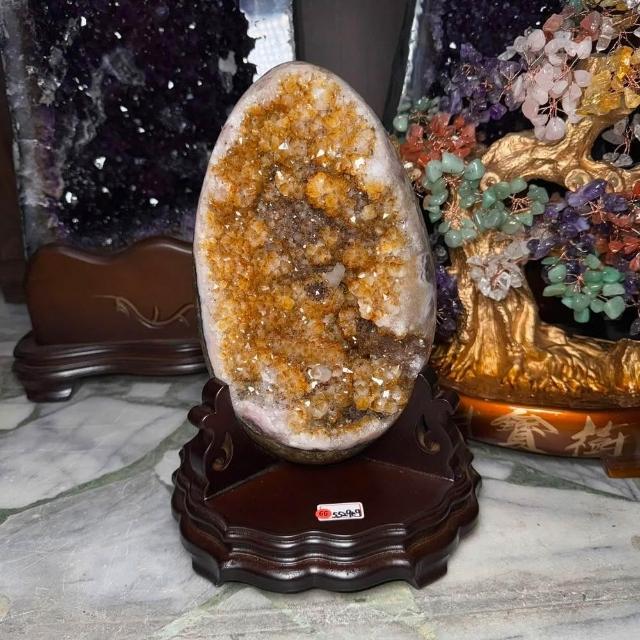 千奇國際精品石敢當!頂級酒黃 拋光皮 黃水晶恐龍蛋晶洞✨66號5.529kg❤️黃水晶簇花 有錢花 方解石 鈦晶 送禮收藏 黃水晶洞