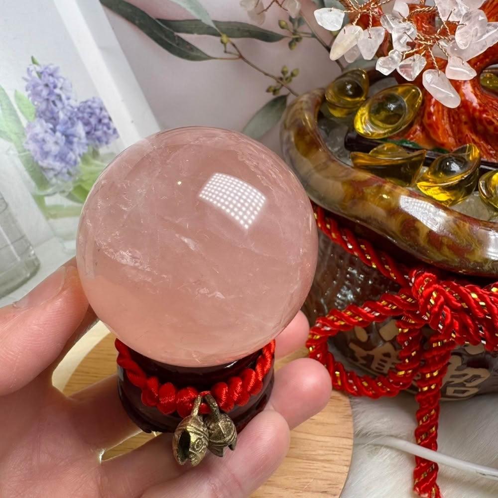 千奇國際精品天然水晶 星光粉水晶球 71號212公克🩷芙蓉色 粉水晶 贈底座✔️療癒水晶 人氣品 送禮收藏 粉水晶
