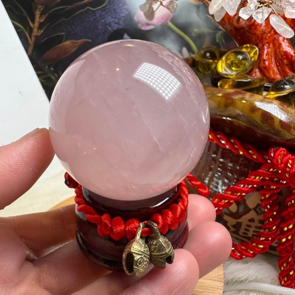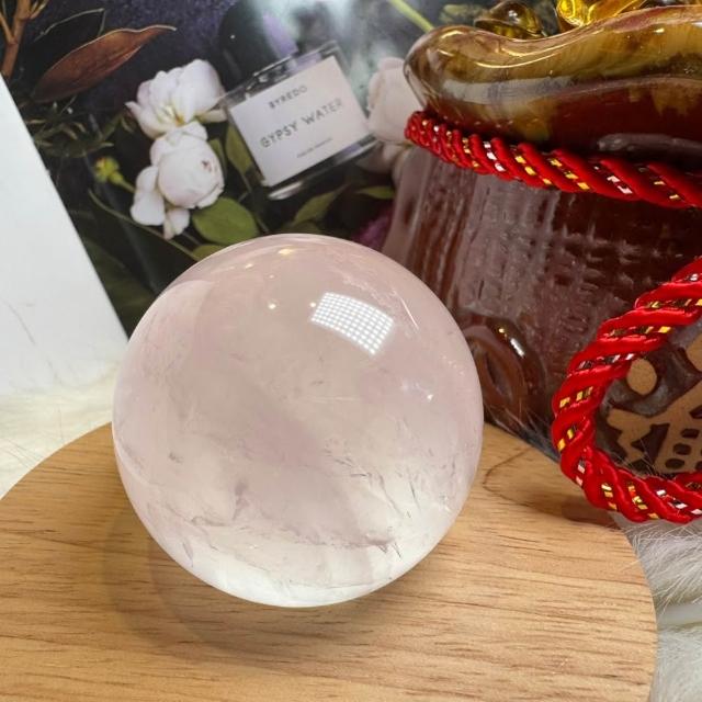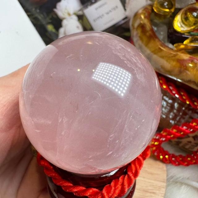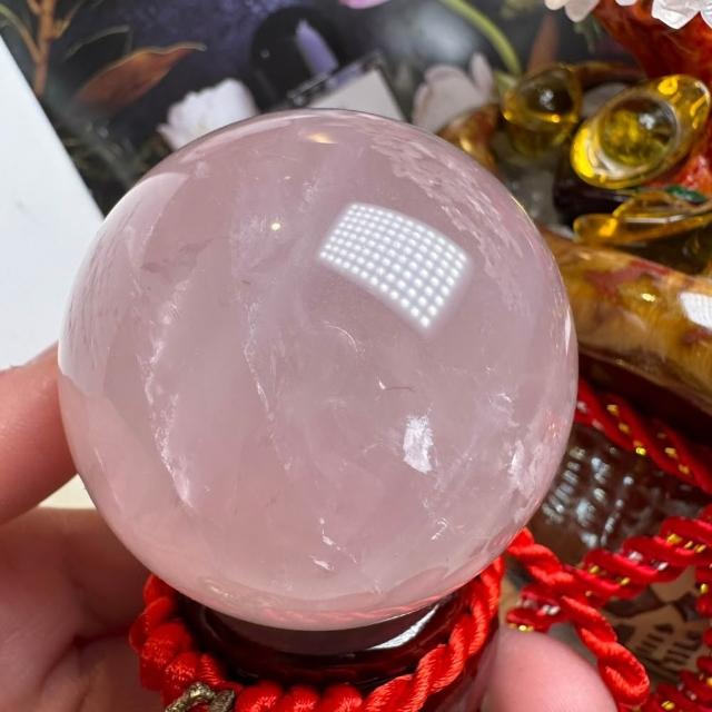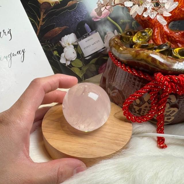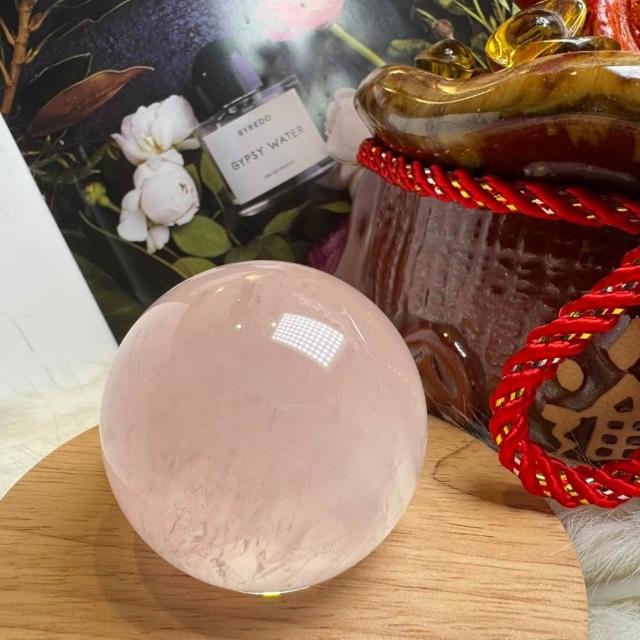 千奇國際精品頂級天然星光 粉水晶球 73號191公克🩷芙蓉色 粉水晶 贈底座✔️天然水晶 招好人緣 好桃花 人氣品 送禮收藏 粉水