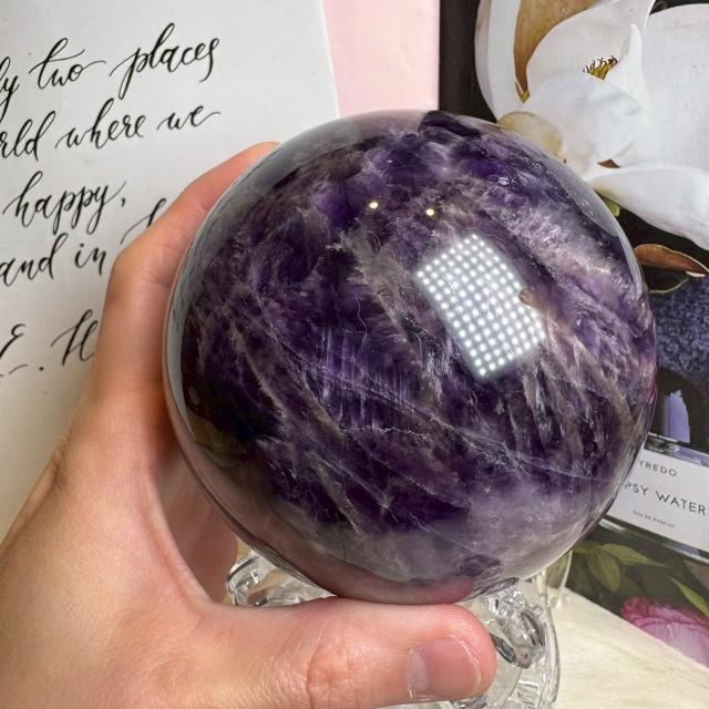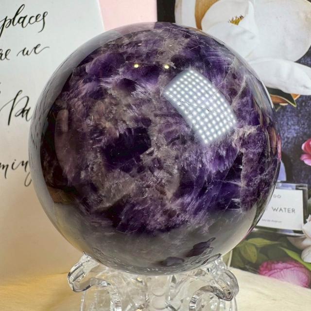 千奇國際精品天然水晶 紫水晶球51號1314公克直徑10公分🔮頂級虎牙紫水晶球 夢幻虎牙紫水晶球