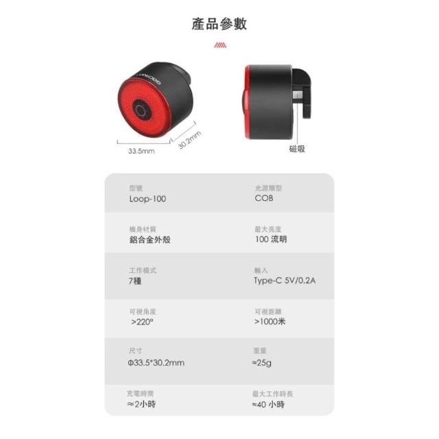 渦輪尾燈二代 GACIRON LOOP-100 USB充電 煞車燈 加雪龍 後燈 > BIKEfun拜訪單車