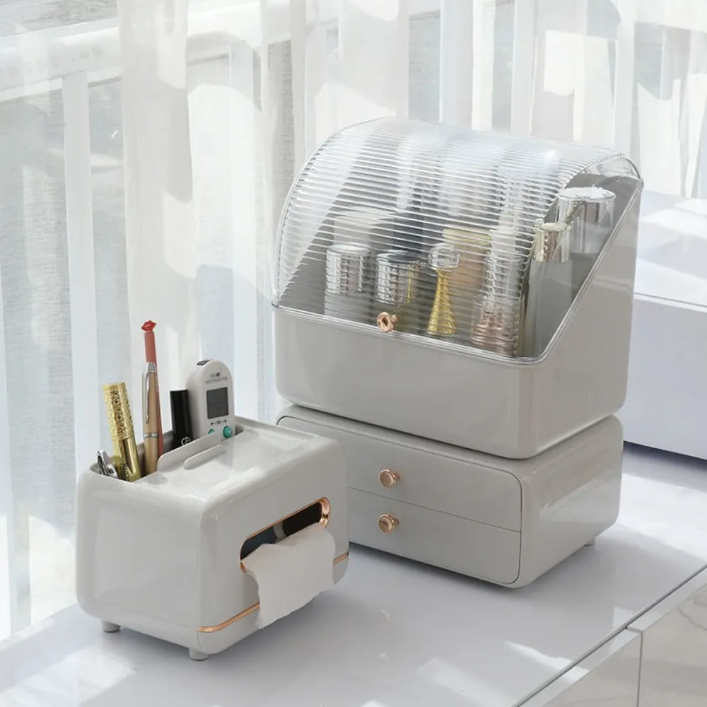 台灣現貨 化妝收納盒 化妝收納 桌面化妝品收納盒 化妝盒收納盒 美妝盒 多功能化妝品收納盒創意輕奢護膚品收納架子(收納盒/化妝品收納盒/分層收納盒/桌面收納)