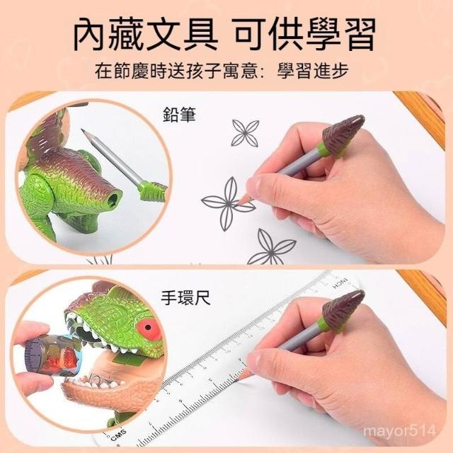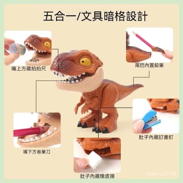霸王龍 迅猛龍 玩具文具 恐龍文具五合一套裝可拆裝創意霸王龍模型學習用品(削筆器 多功能削鉛筆機)