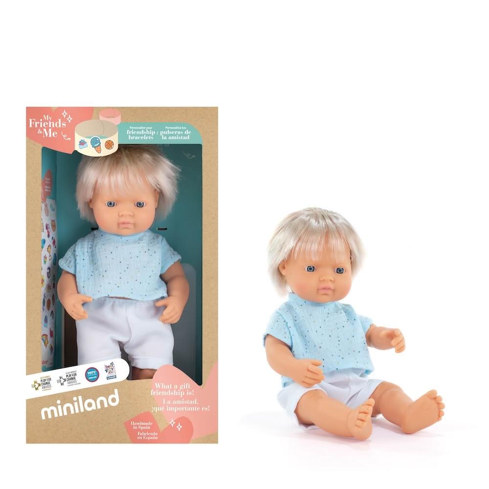Miniland【西班牙miniland】MF&M小米藍白人娃娃-金髮(男孩38公分)