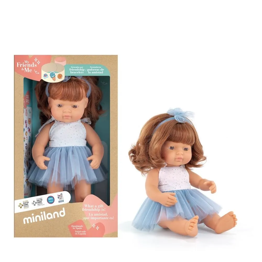 Miniland【西班牙miniland】MF&M小米藍白人娃娃-紅髮(女孩38公分)